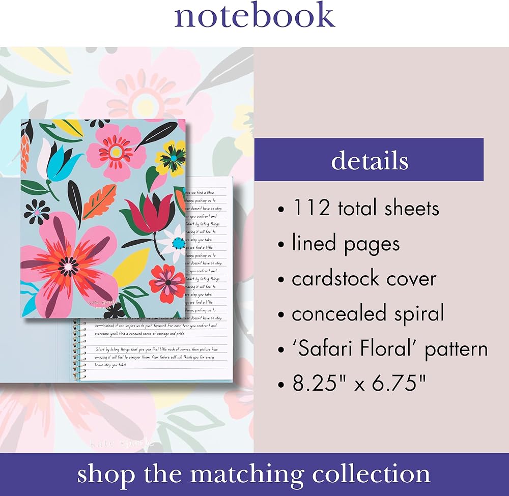 دفتر ملاحظات حلزوني كيت سبيد نيويورك ، 8.25 "× 6.75" دفتر مجلة مع 112 صفحة مبطنة ، Safari Floral