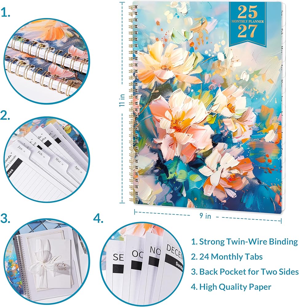 • التصميم الوظيفي-ملزمة قوية مزدوجة الأسلاك لبرنامج 2025-2027 مخطط التقويم الشهري Lay-Flat 360 ° + 24 شهريًا لرجوع سريع + الجيب الخلفي الجانبي للاحتفاظ ببعض العناصر + غطاء الختم الذهبي