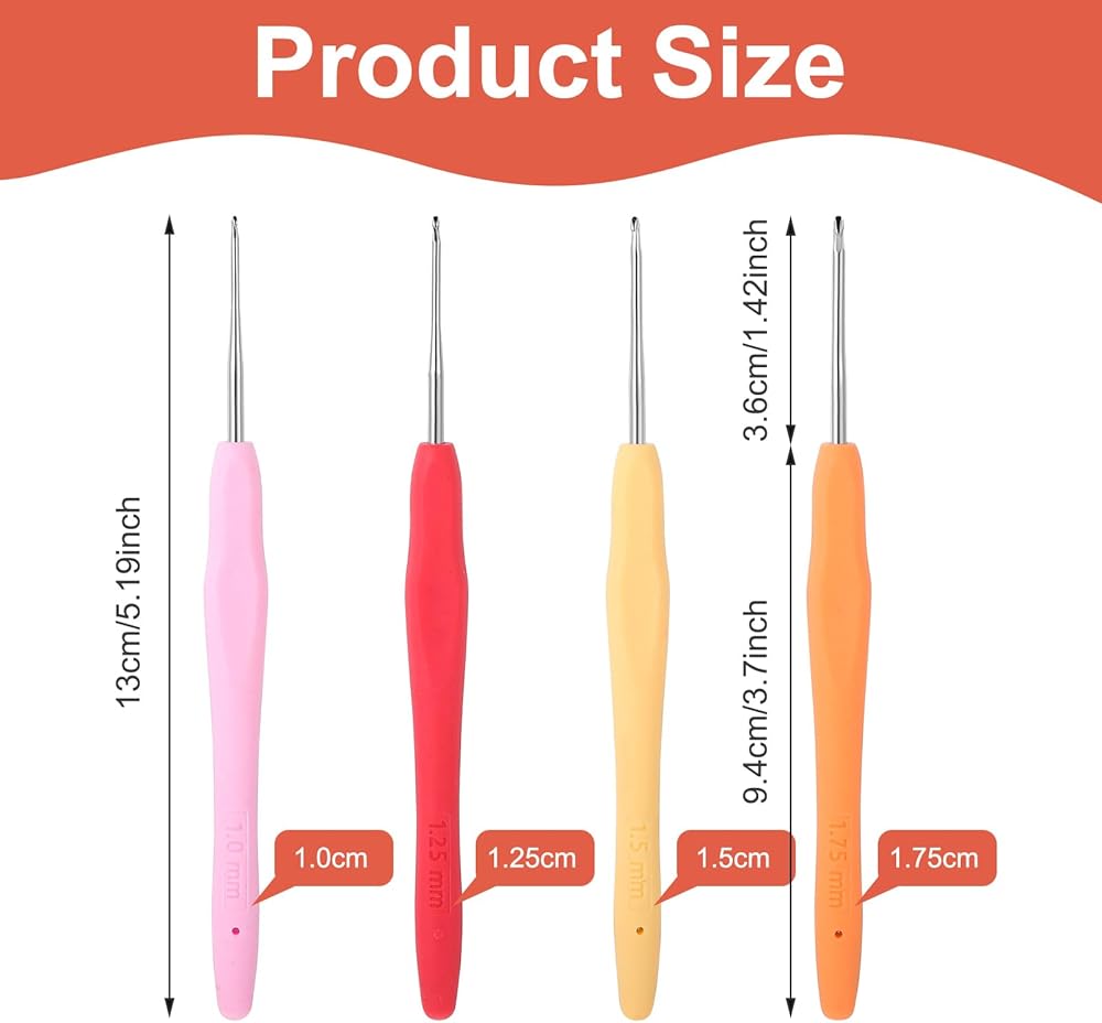 【Precise size】Each mini crochet hook is labeled with a number on the handle for easy identification.Loc tools for interlocking are available in 4 sizes: 1 mm, 1.25 mm, 1.5 mm, 1.75 mm to meet different knitting needs, from fine lace knitting to thick wool yarn.