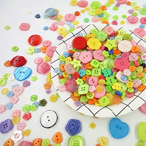 Yaka 600-800 PCS متنوعين بالألوان المختلطة وأزرار الراتنج 2 و 4 ثقوب جولة يدويًا لزراعة الأطفال لخياطة الزخرفة المصنوعة يدويًا ، ديكورات (متعددة الألوان)