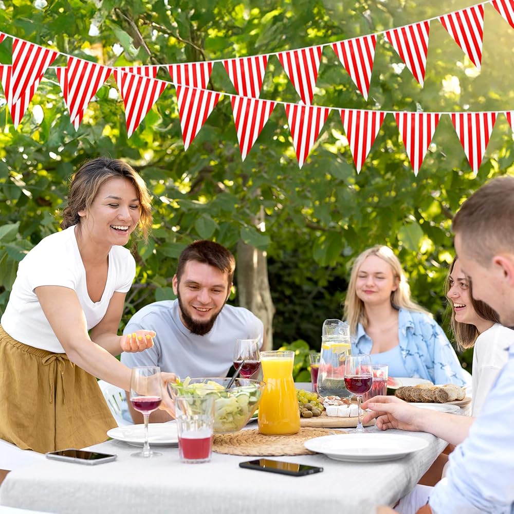 Red and White Stripes: The triangular colored flag adopts a red and white striped design, which is simple and classic, adding color to your party decoration, allowing you and your guests to enjoy the carnival more happily