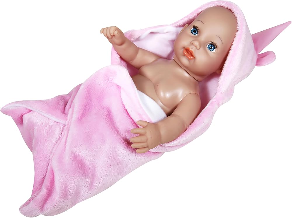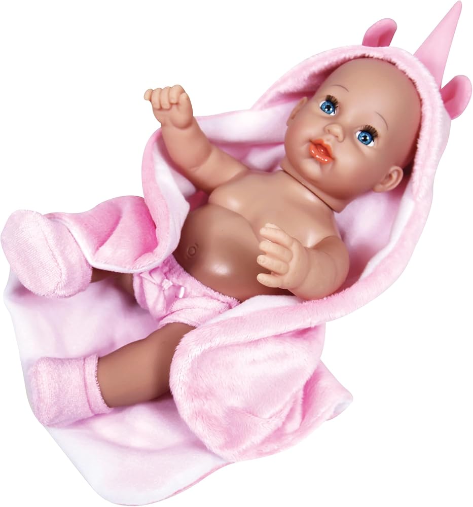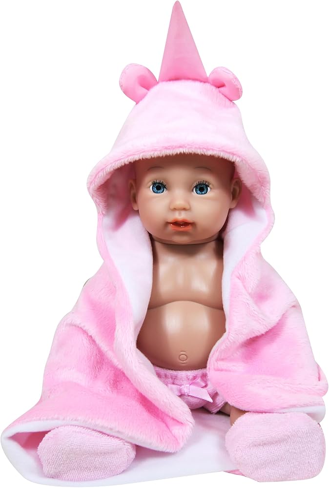 BABY DOLL GIA - 12" PINK UNICORN HOOD - Meet baby Gia the adorable 12” baby doll. Dressed in a soft and high-quality removable pink outfit with a matching hat, Gia becomes the perfect canvas for your child's creativity as they joyfully change their baby doll's outfit, fostering fine motor skills and imaginative expression. Gia, with her captivating blue eyes, is not just a doll; she's a loving companion. Complete with a bottle and a soft pink blanket, Gia turns feeding and cuddle time into cherished moments. This delightful baby doll set encourages loving role-play, supporting emotional development, and providing a platform for children to express their feelings. Playing with dolls is more than just fun; it's an opportunity for children to develop fine motor skills through grasping and manipulating objects with their hands. Suitable for ages 2 and above, Baby Gia is not just a toy but a valuable companion that promises to bring joy, growth, and emotional connection to your child's playtime. Gia makes a thoughtful and delightful gift, sparking smiles and imaginative play in every child. Unleash a world of adventure and creativity with the Baby Doll Gia, the perfect companion for playtime for your little one.
