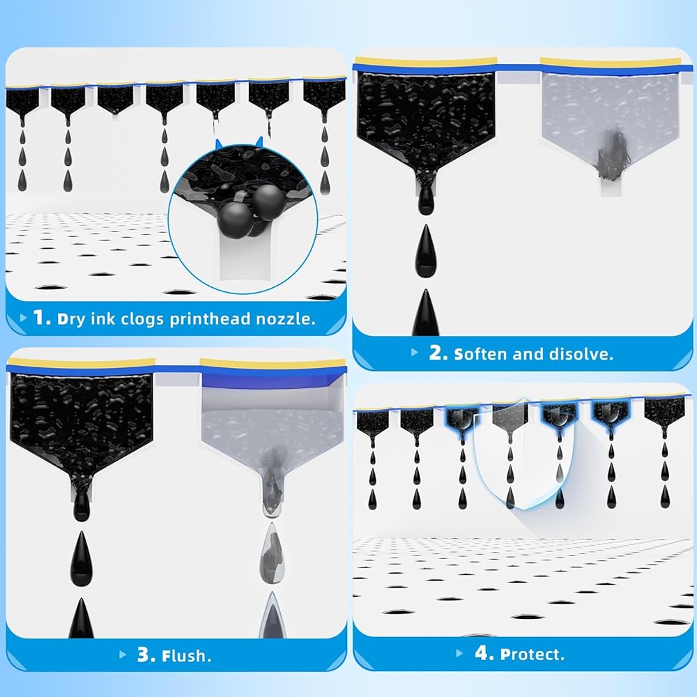 الإدمان القوي: يتميز حل التنظيف الخاص بنا خصيصًا بمثابة إذابة قوي ، ويكسر الحبر المجفف والحطام المجفف بشكل فعال ، مما يضمن التنظيف الشامل لفوهات الرؤوس الطباعية.