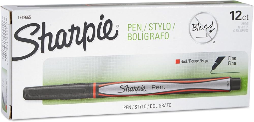 Sharpie 1742665 Point Point Stick قلم دائم مقاوم للماء ، حبر أحمر ، غرامة ، عشرات