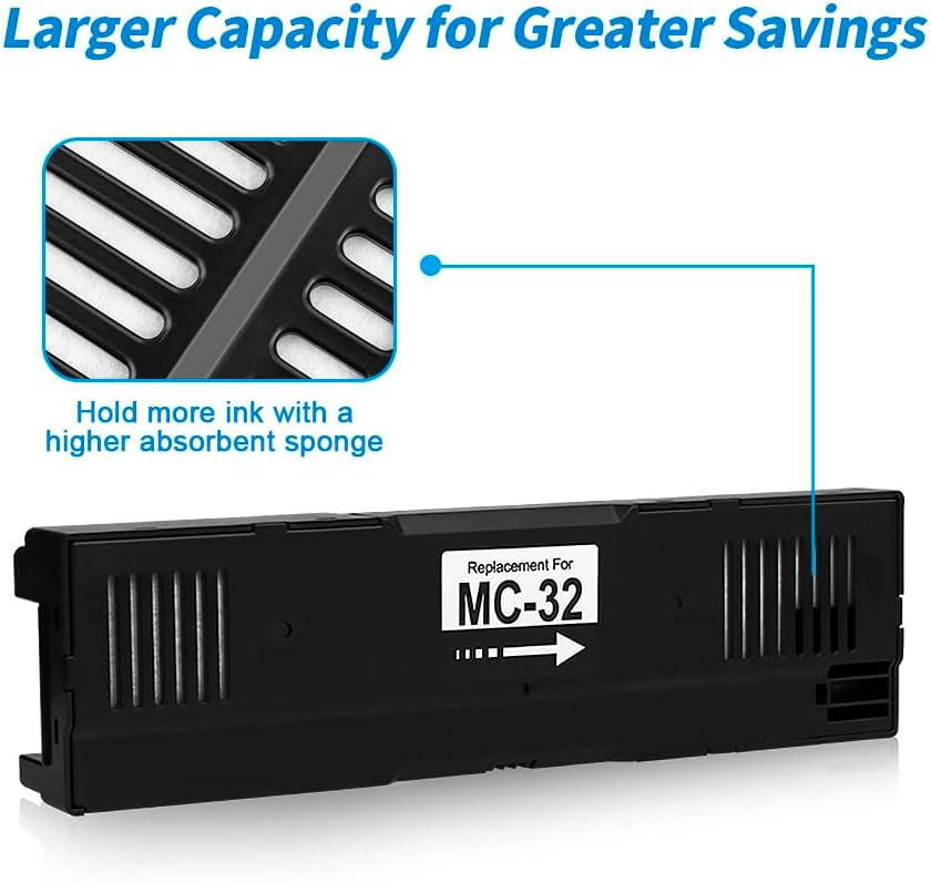 • قدرة أكبر على توفير أكبر: يمكن أن تحتفظ خرطوشة الصيانة MC-32 بمزيد من الحبر مع إسفنجة أكثر امتصاصًا ، مما يساعدك على استبدال الخراطيش في كثير من الأحيان وتوفير المال.