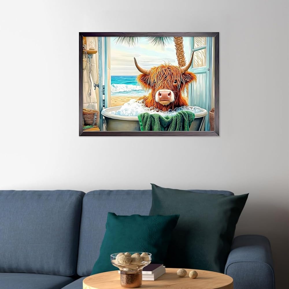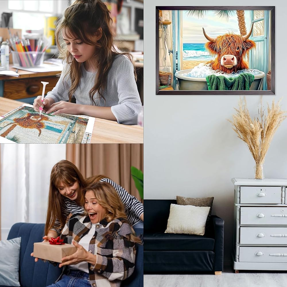 Ceovr Highland Cow Diamond Art Kits للبالغين ، والبقرة الاستحمام 5D DIY الحفر الكامل Diamond Painting Dots Gem Art ، و Kits Crafts Kits Arts and Grain Decor