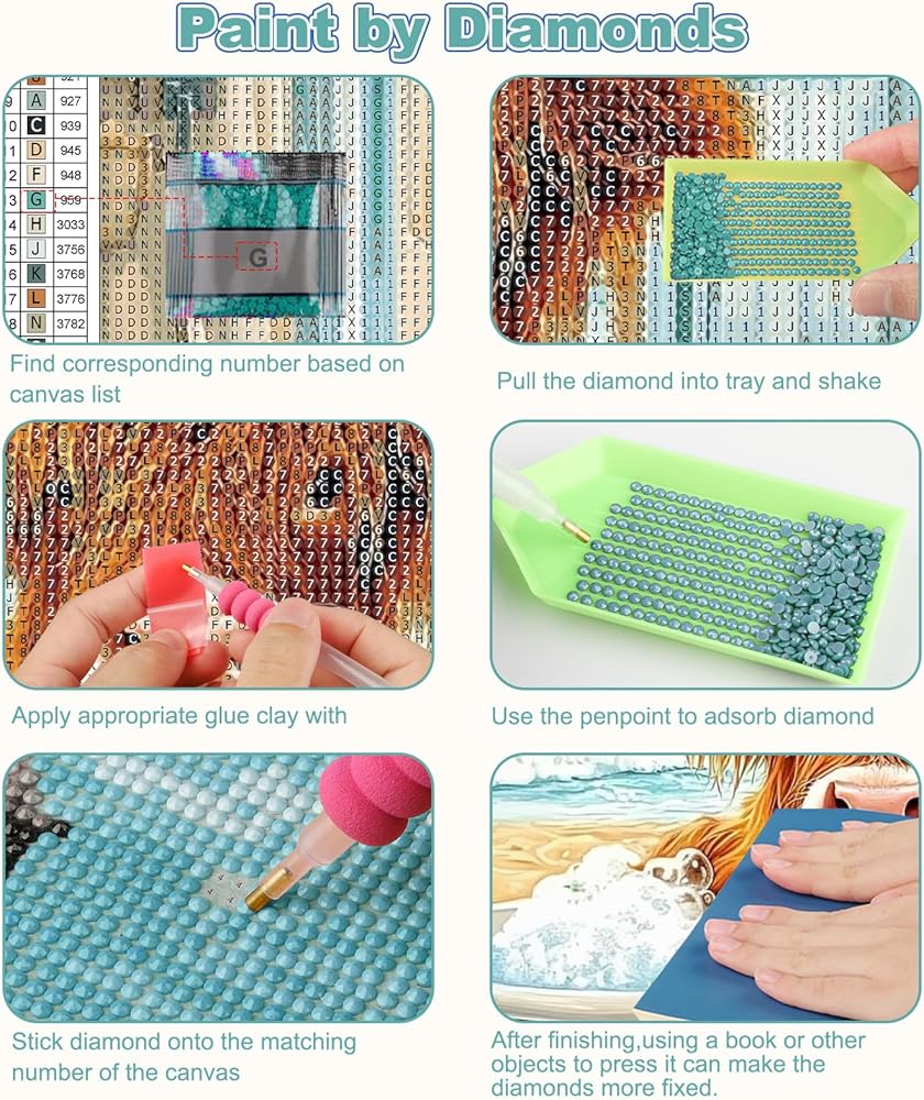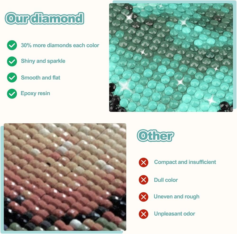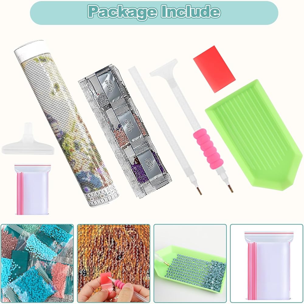 • 【ما ستحصل عليه】 12*16 بوصة قماشية عالية الوضوح ، 2 أقلام الماس ، 1 طين غراء ، صينية واحدة ، أداة واحدة القلم ، أكياس ziplock كافية ، مجموعة واحدة من الخرز و 30 ٪ من الأحجار الكريمة لكل لون. القماش المطبوع مصنوع من مواد متينة تحتوي على نسيج موحد ولون نابض بالحياة.