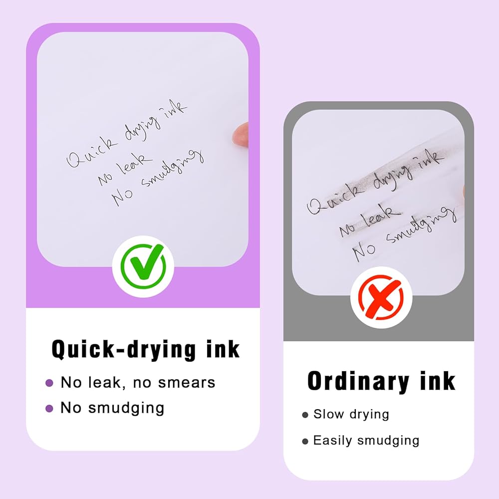 Smooth, Precise Writing: Our 0.5mm fine point gel pens provide a perfect writing experience, and the ink dries quickly, ensuring no bleed-through. Whether you're journaling, taking notes, or sketching, these pens deliver crisp, sharp lines every time. Perfect for those who strive for precision and clarity, these pens elevate your writing experience while ensuring long-lasting performance.