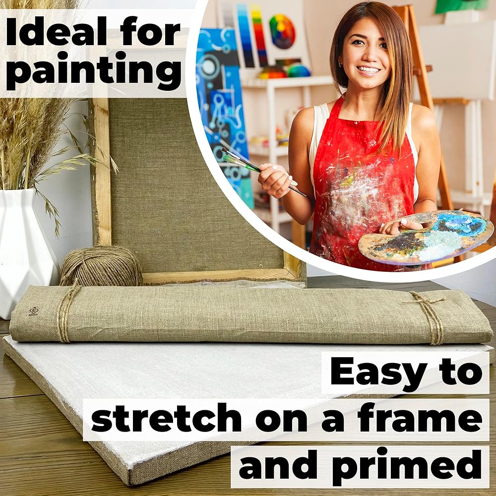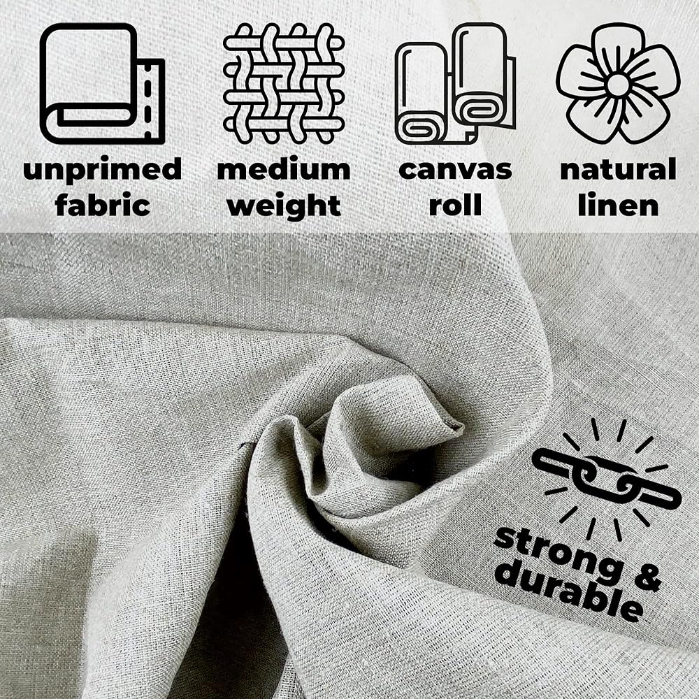 قماش الكتان الفني 69 "عريض × 2 ياردة - نسيج الكتان الطبيعي العادي - قماش الكتان غير المتوافق للطلاء - قماش خام (28.2 أوقية) للفن