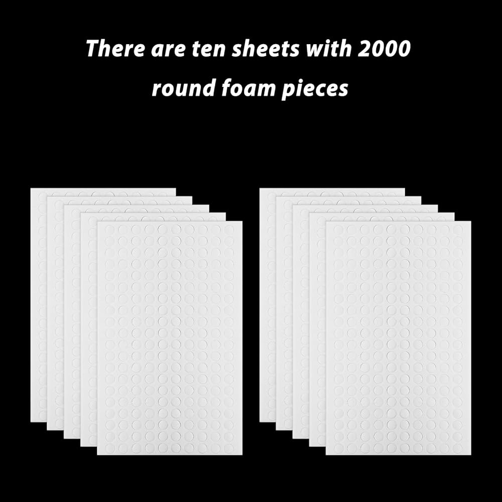 Introducing our multipurpose Double-Sided Adhesive Foam Dots, each pack containing 10 sheets of premium 0.23" dual-adhesive foam dots. With every sheet loaded with 200 pieces, you get a total of 2000 versatile foam dots, perfect for various craft projects. The dots, which are 6mm in diameter and 1.8mm in thickness, can be stacked to add depth to your creations. Made from high-quality PE foam and adhesives, these dots ensure long-lasting stickiness without leaving any residue. Ideal for a wide range of applications, they provide a hassle-free solution to your creative and office needs.