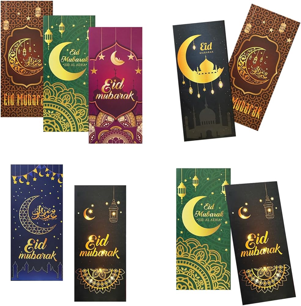 EID MUBARAK ATMOSPHERE:The Islam Eid Mubarak envelopes are printed with unique arabic religious elements, like moon, mosque, star, lantern, "Eid Mubarak" words; They are amazing to boost atmosphere for holding Eid Mubarak,Ramadan Mubarak,Hajj party