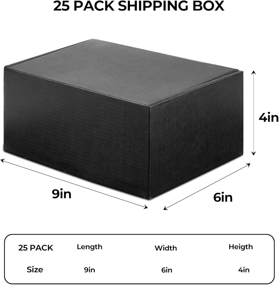 البناء القوي: مصنوع من 3 طبقات مضغوطة مضغوط ، مع قدرة على تحمل أفضل ومقاومة سحق ، يمنع الرطوبة والتشوه. الحجم الخارجي لصناديق الشحن هو 9x6 × 4 بوصات ، والحجم الداخلي هو 8.6x5.9x3.9 بوصة 25 صناديق على الحزمة