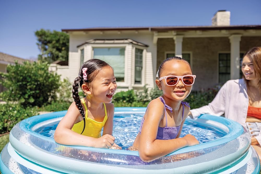 Bring the kids together for summer fun in this serene kiddie pool, sporting a mosaic tile floor pattern.