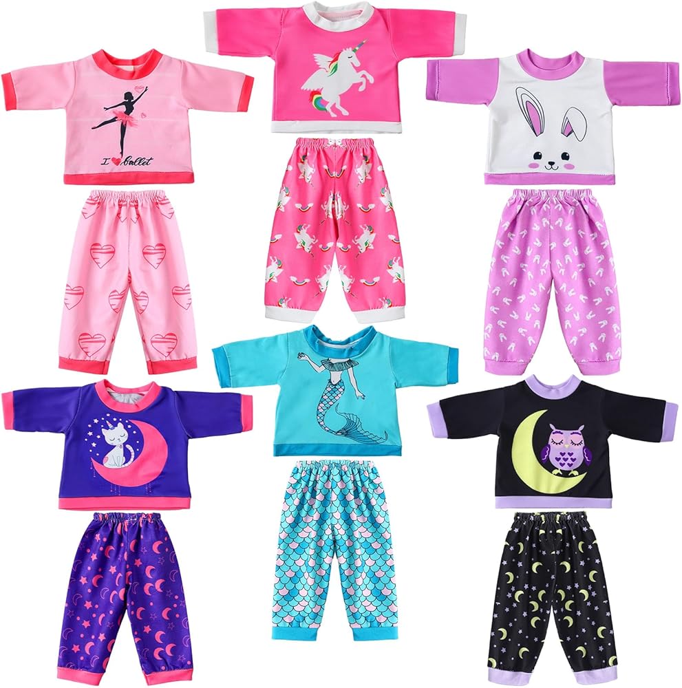 Doll Clothes Set: you will get 6 sets distinctively designed baby doll clothes for 18 inch baby dolls, which consists of 6 jumpsuits and 6 hats; With a myriad of vibrant colors, the clothes can be applied as doll's pajamas or for dressing up dolls during playtimes in fun and imaginative different scenarios; This abundance of options offers adequate quantity for children to switch and mix match according to varying scenes across all seasons