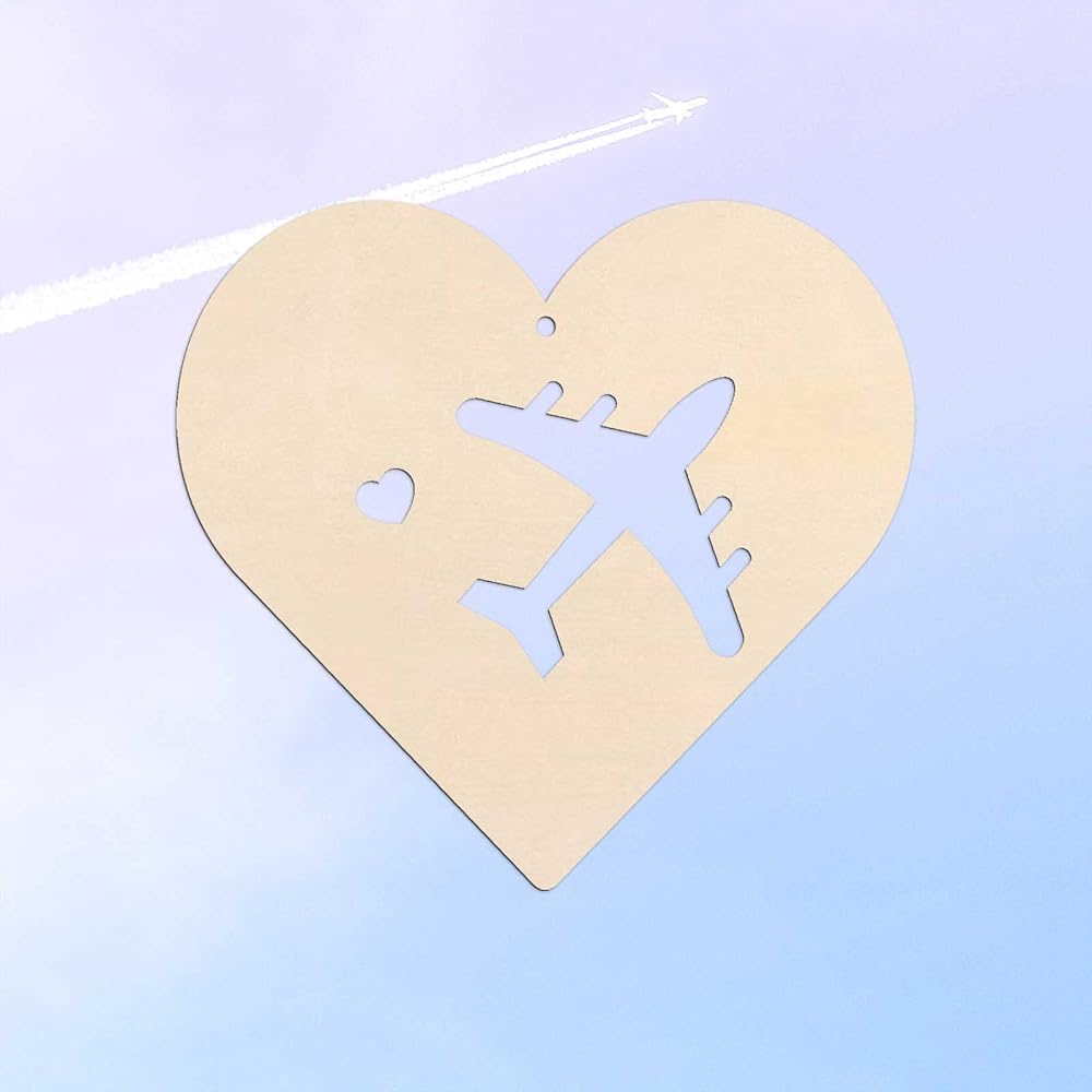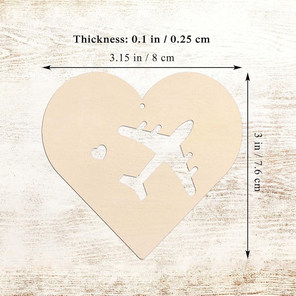 FEATURE: Wooden blank airplane heart shaped design hanging ornaments, can be used for aviation party decoration. Perfect for using as tags, party board, classroom board.