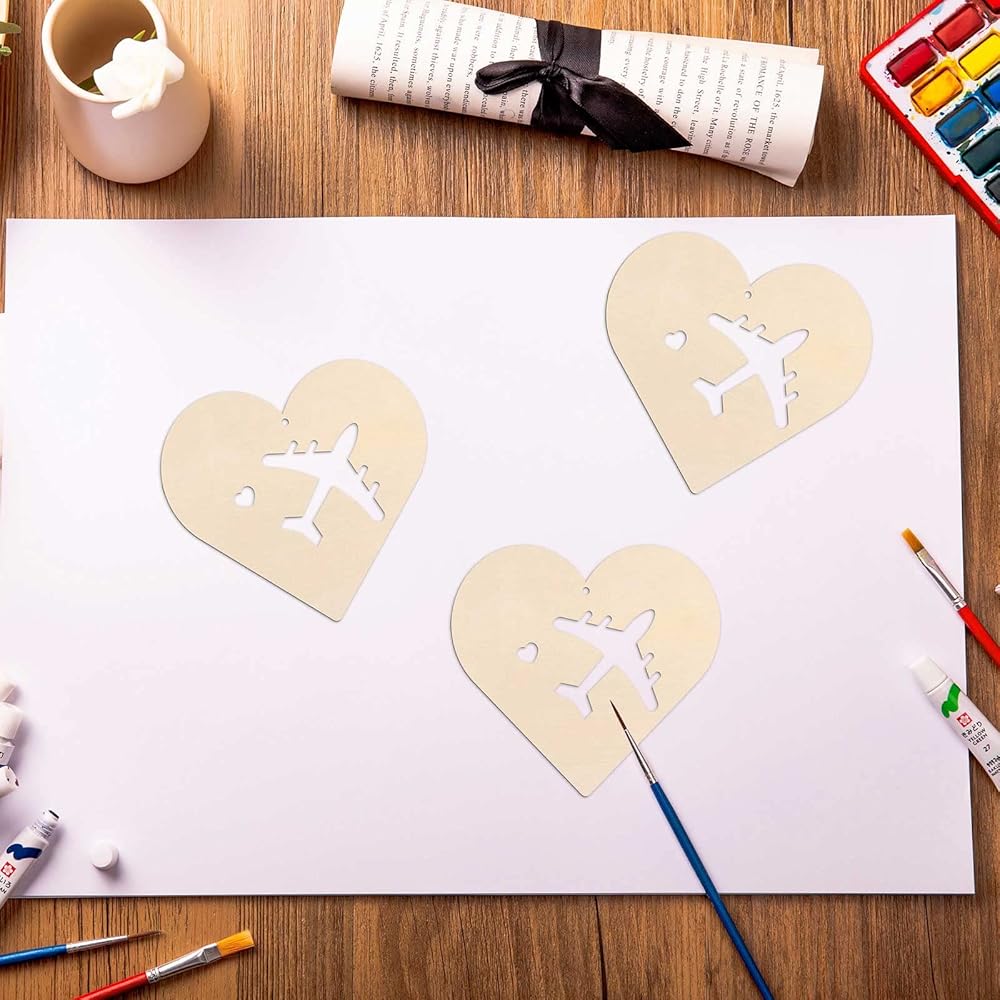 PACKAGE: Pack of 20pcs airplane heart wood crafts cutouts. Each wood piece was well polished, blank wood slices are ready to be paint and write, you may stain, drill, curve and decorate them as you like.