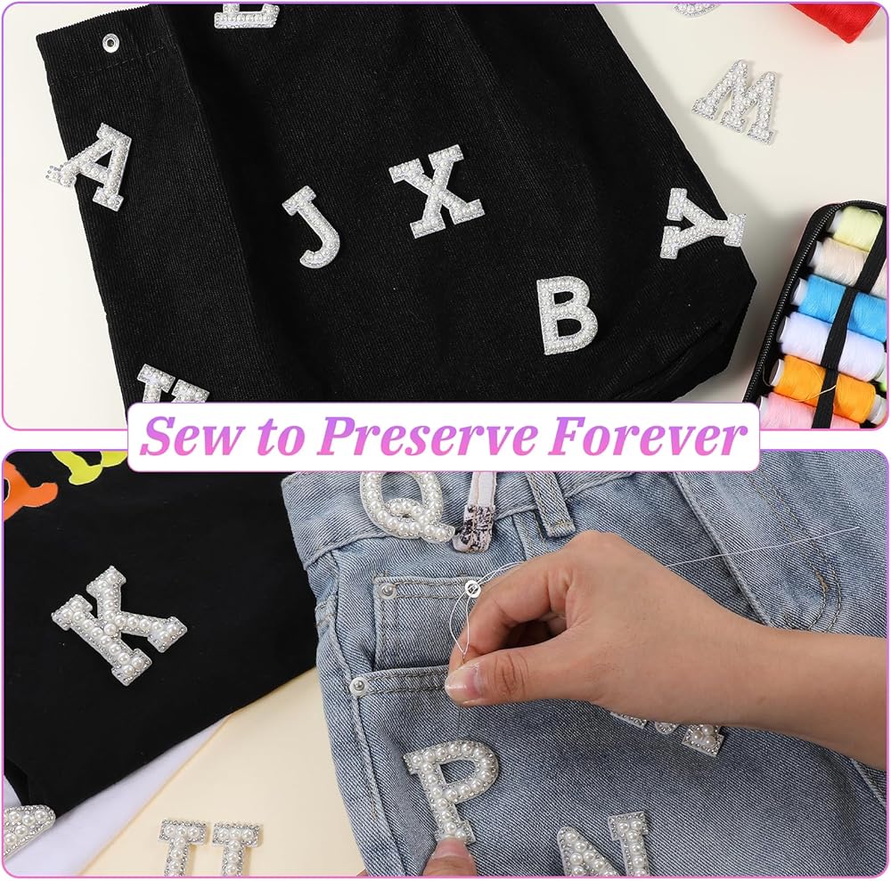 2.Our fabric letters stick on are designed with exquisite pearl and rhinestone inlays, adhesive letter patches look very beautiful and can add some charming colors to your clothes.