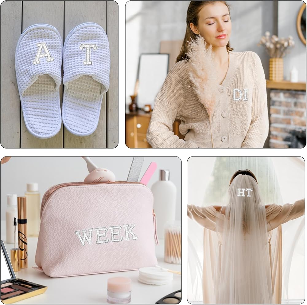 【Exquisite Shape】Our white letter stickers have exquisite shape design and the surface is inlaid with rhinestones and pearls. Letter patches stick on look very beautiful and sparkling, letter patches for backpacks can add some charming colors to your clothes.