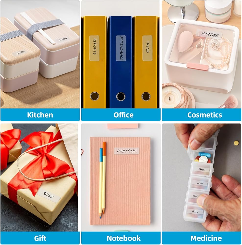 【Widely Used】This printer label is widely used in the daily life, organizing home supplies, classifying cosmetics items, business display, price name jewelry tags, jar stickers, school and office files classification, storage, marking, etc. Can be firmly attached to paper, envelopes, plastic, package, glass, and metal.