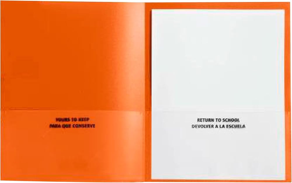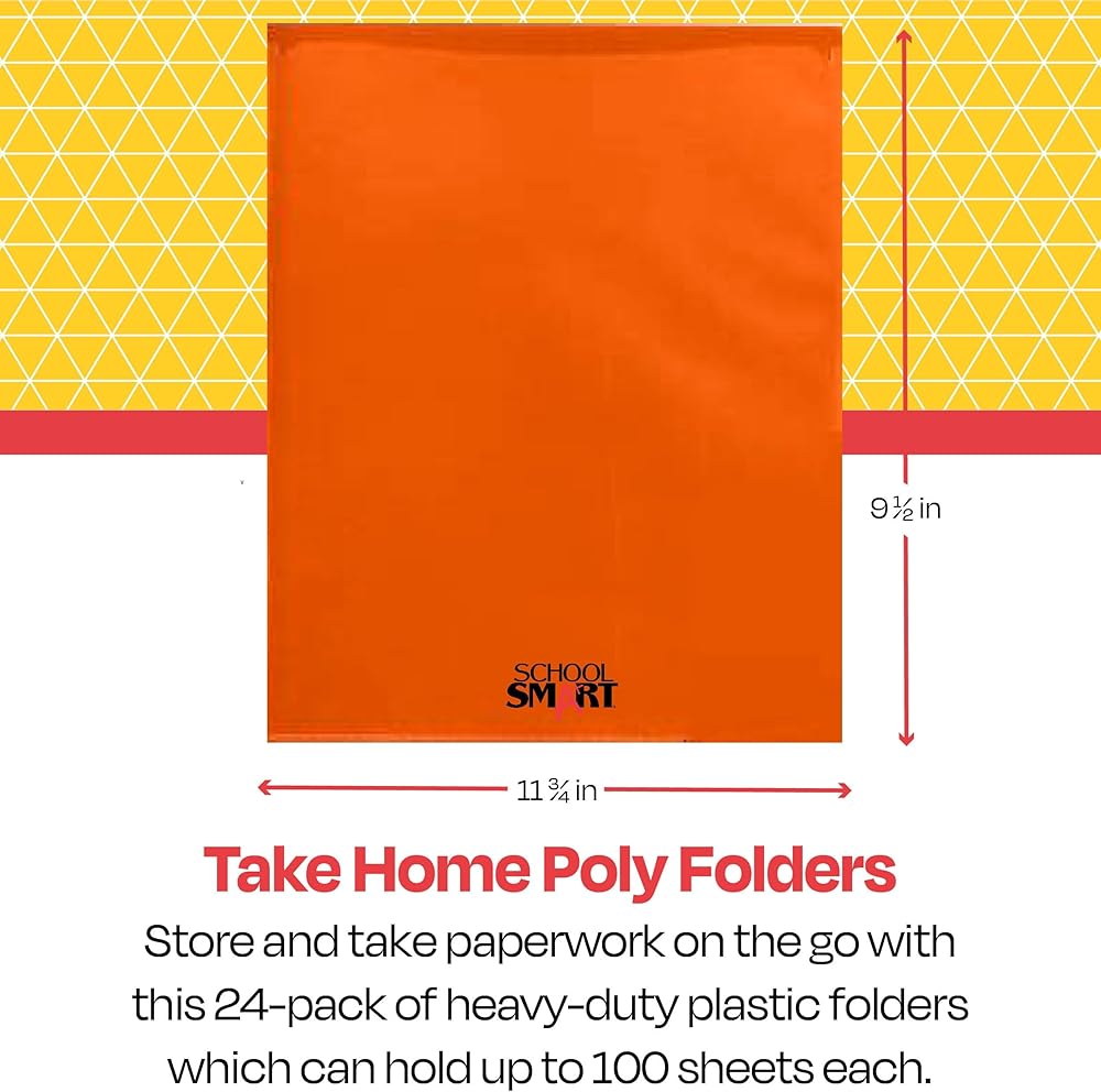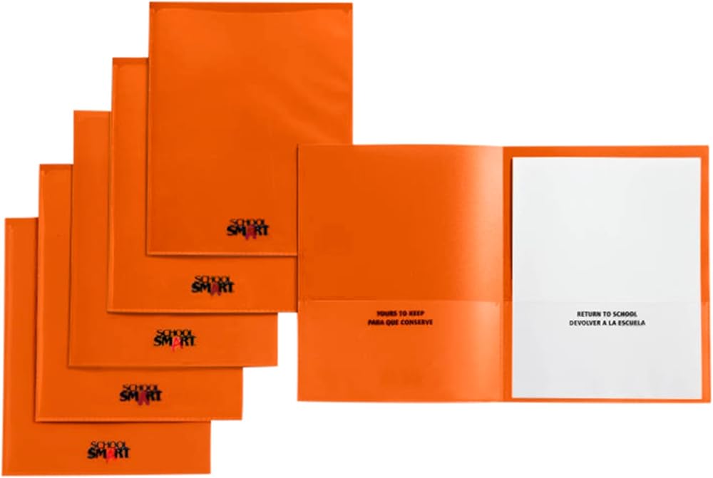 School Smart yellow take home folders provide maximum protection and a fun, sleek appearance. The construction is made of durable grained polypropylene with an embossed, clear border for viewing and placing your most important documents or notecards. Our 2-pocket folders with clear border slips include a left pocket with business card holder slot and "Return to School" bilingual text indications. Each plastic take home folder for students holds up to 100 sheets of paper.