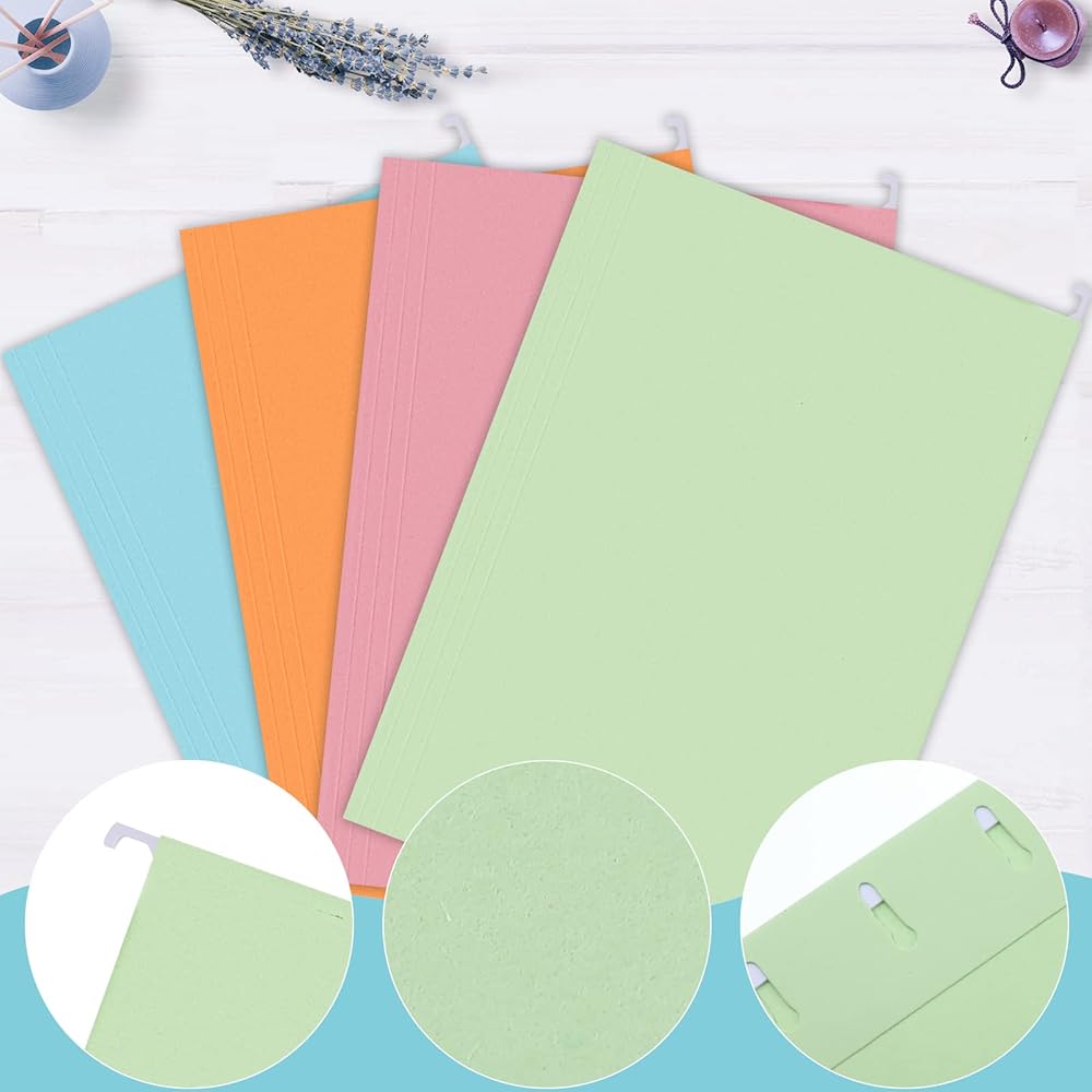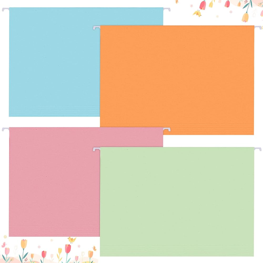 24 حزمة معلقة ملفات الملفات ، 1/5 قطع علامة تبويب قابلة للتعديل ، مجلدات زخرفية لطيفة للوازم المكتبي الفصل الدراسي 9.3 × 11.7 بوصة ، 4 تصميمات (ألوان المعكرون)