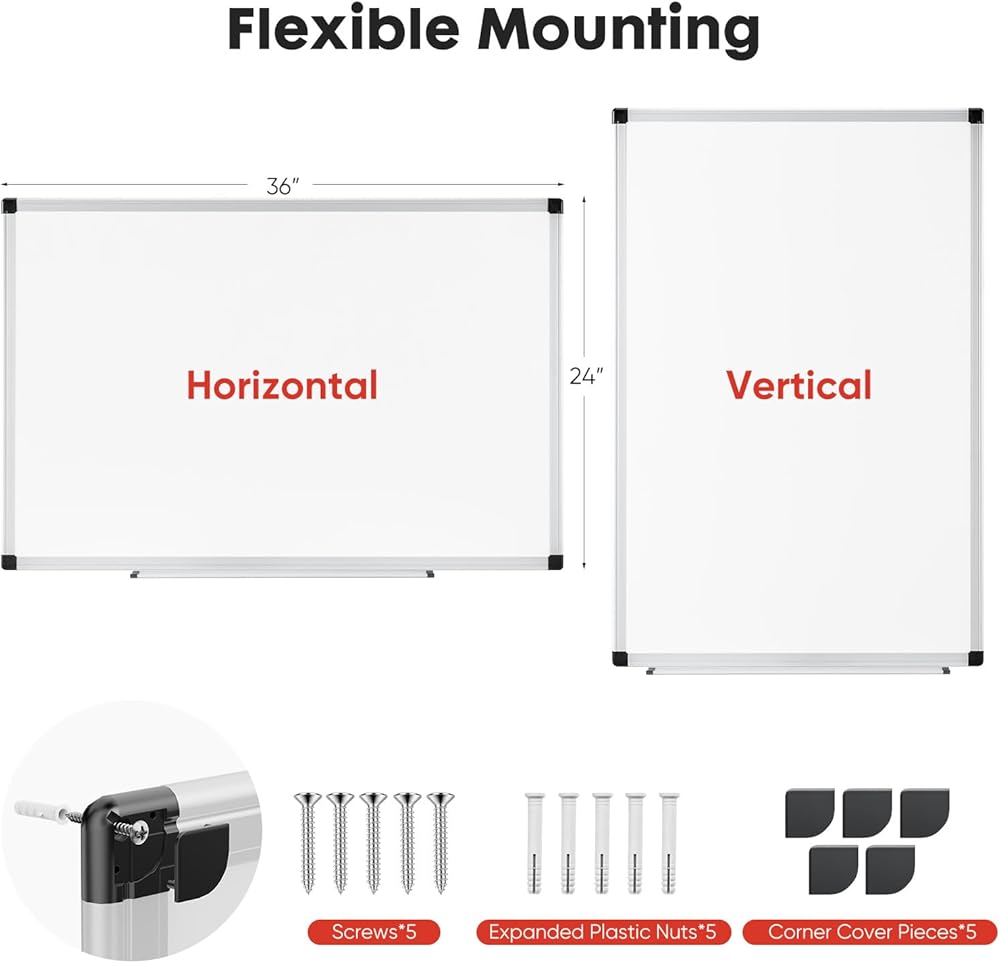 【التثبيت متعدد الاستخدامات】 التثبيت المرن ، إما أفقيًا أو رأسيًا. تخصيص اتجاه اللوحة البيضاء لتناسب مساحتك واحتياجاتك.