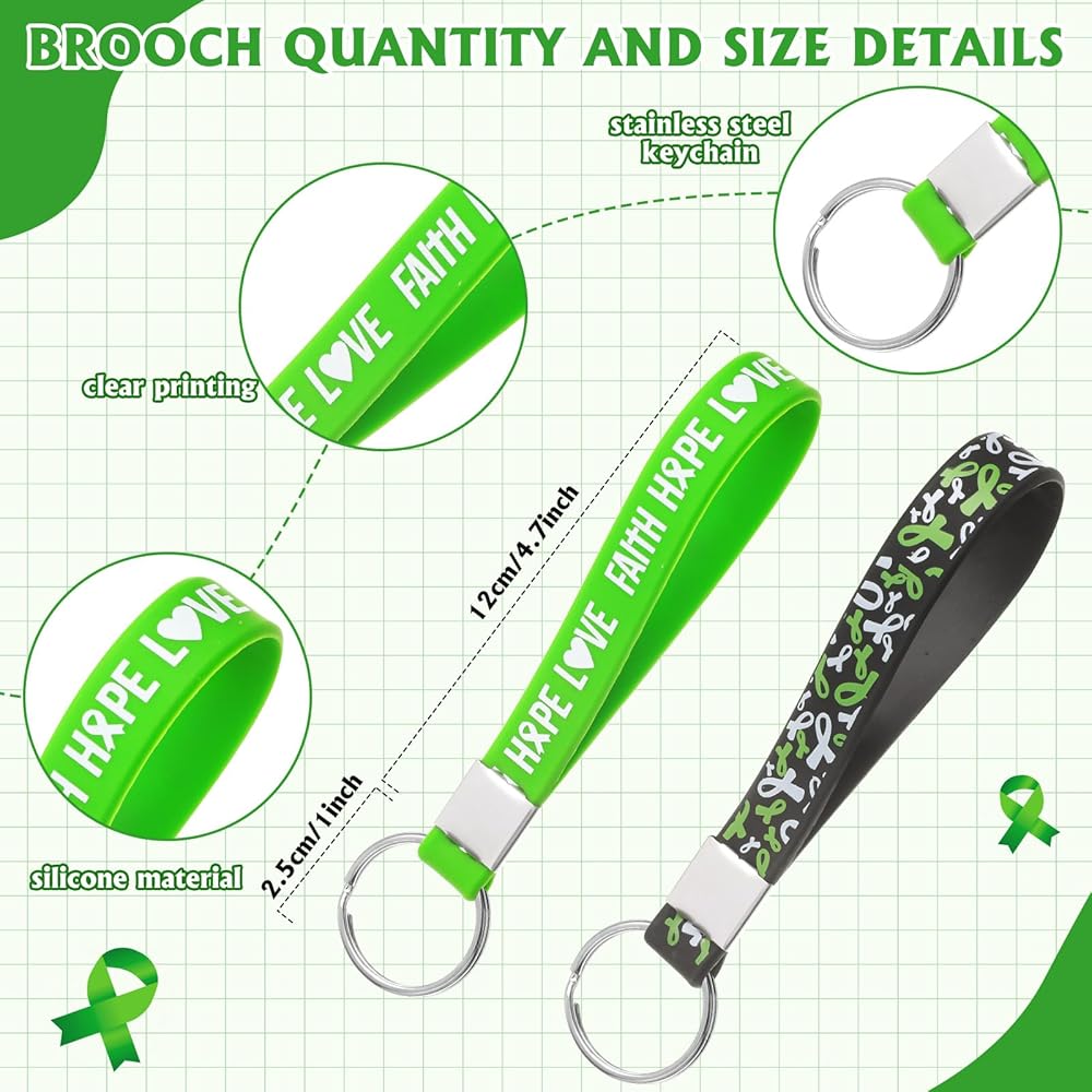 Mental health silicone wristband and keychains: about 1.2 cm/ 0.5 inches wide, and 20.2 cm/ 8 inches in circumference