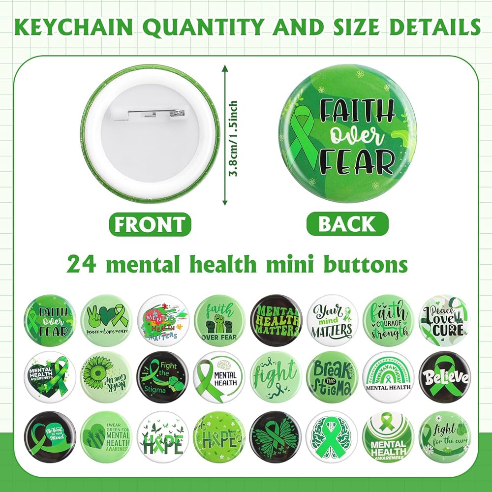 Mental health pins: about 1.5 inches/ 3.8 cm in diameter