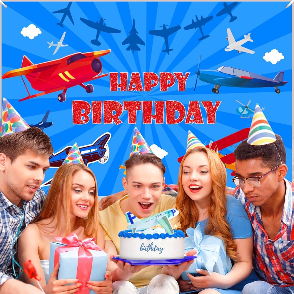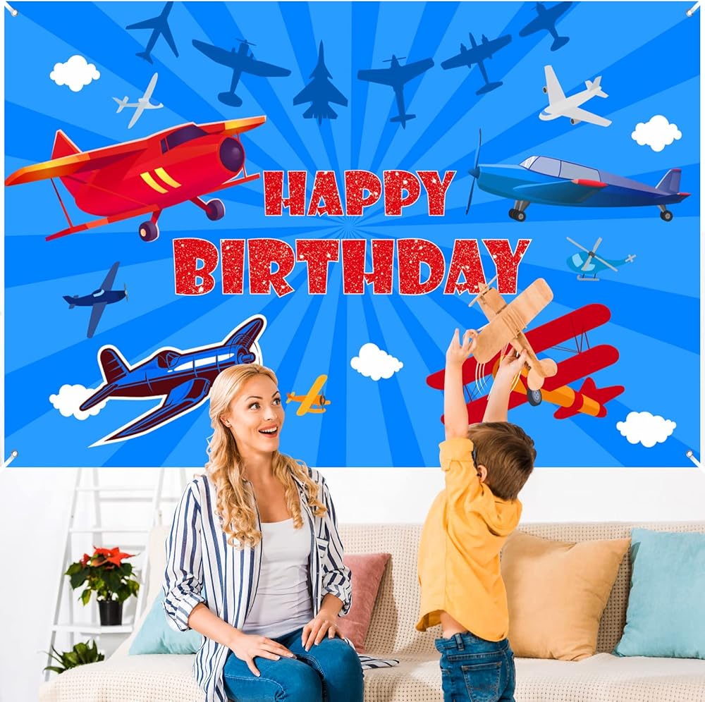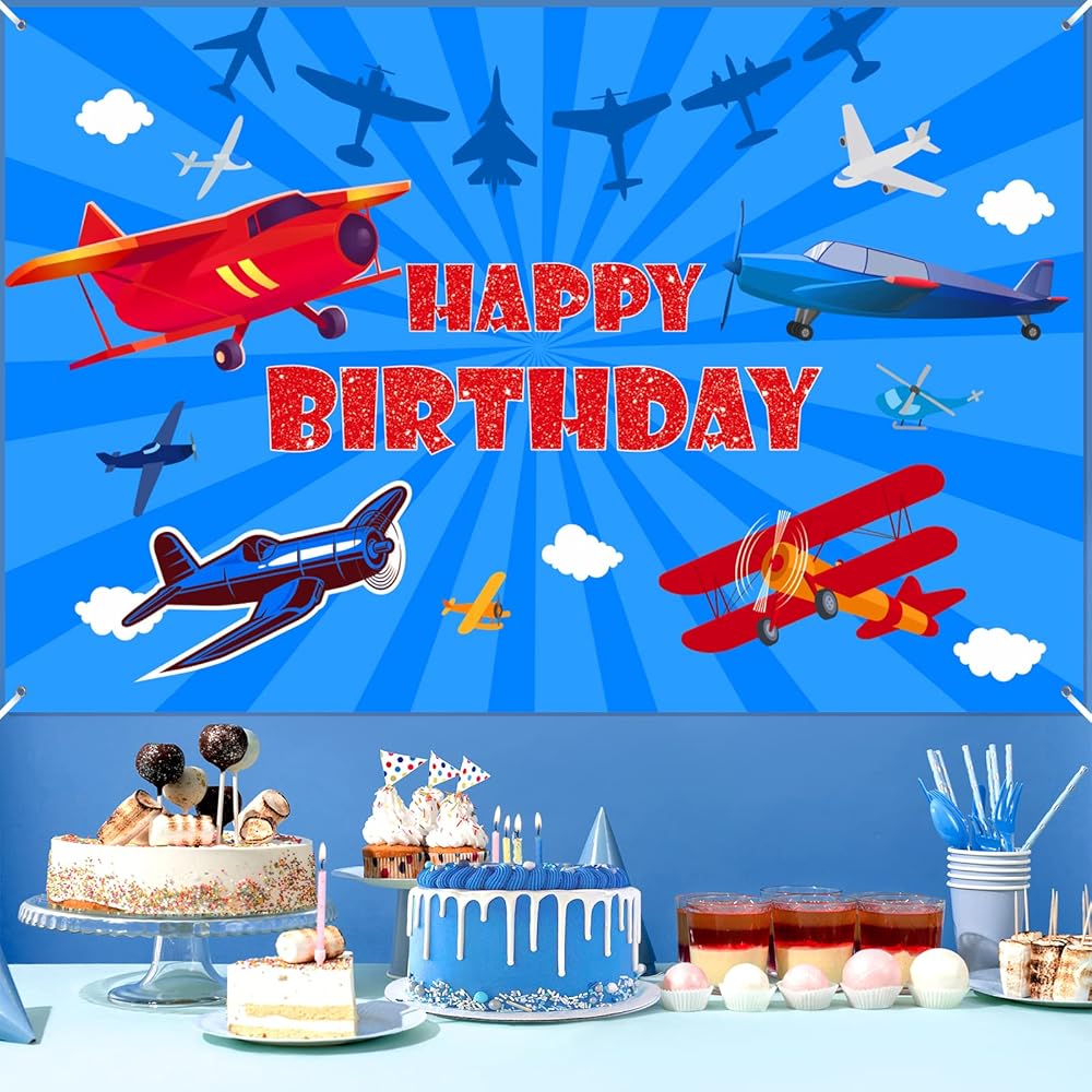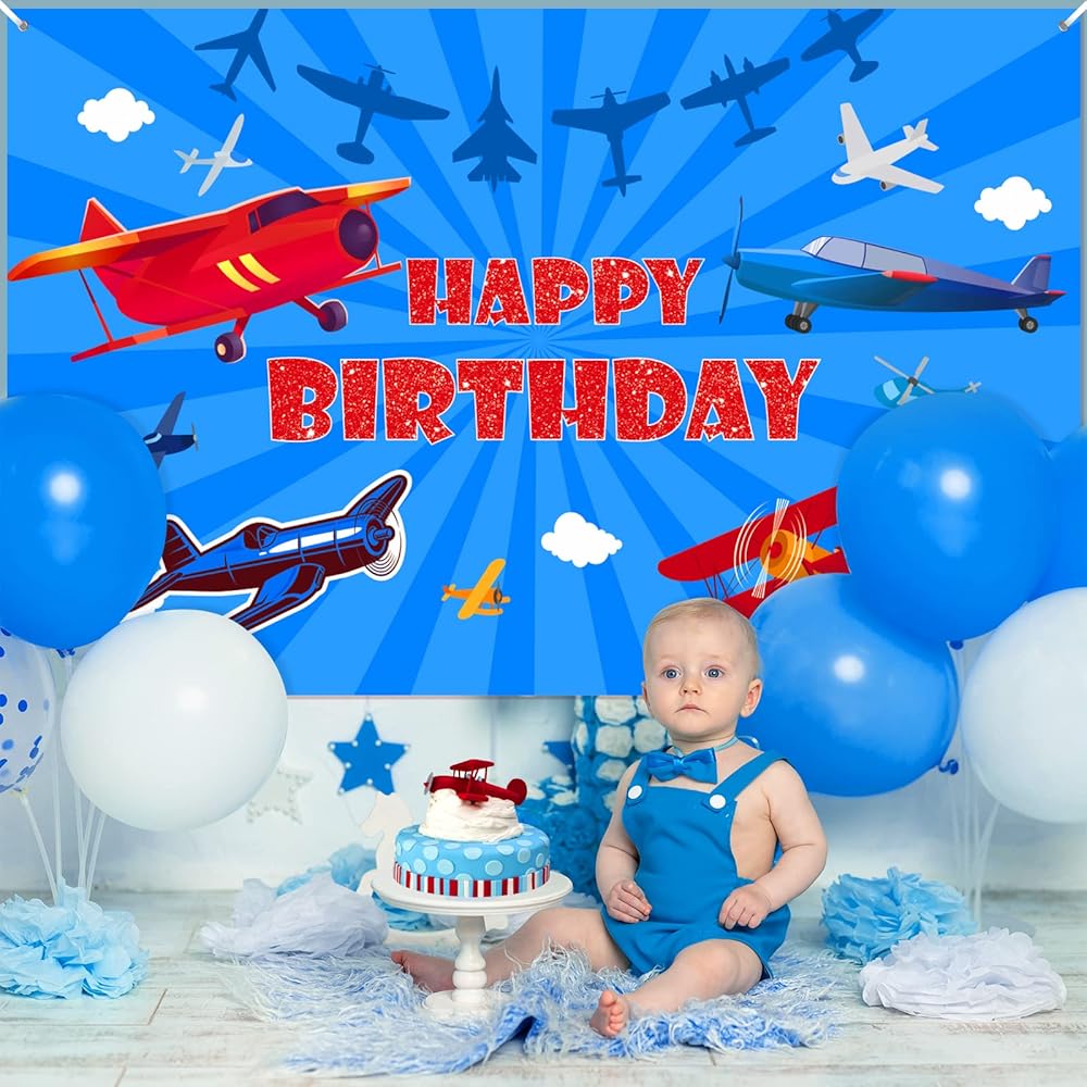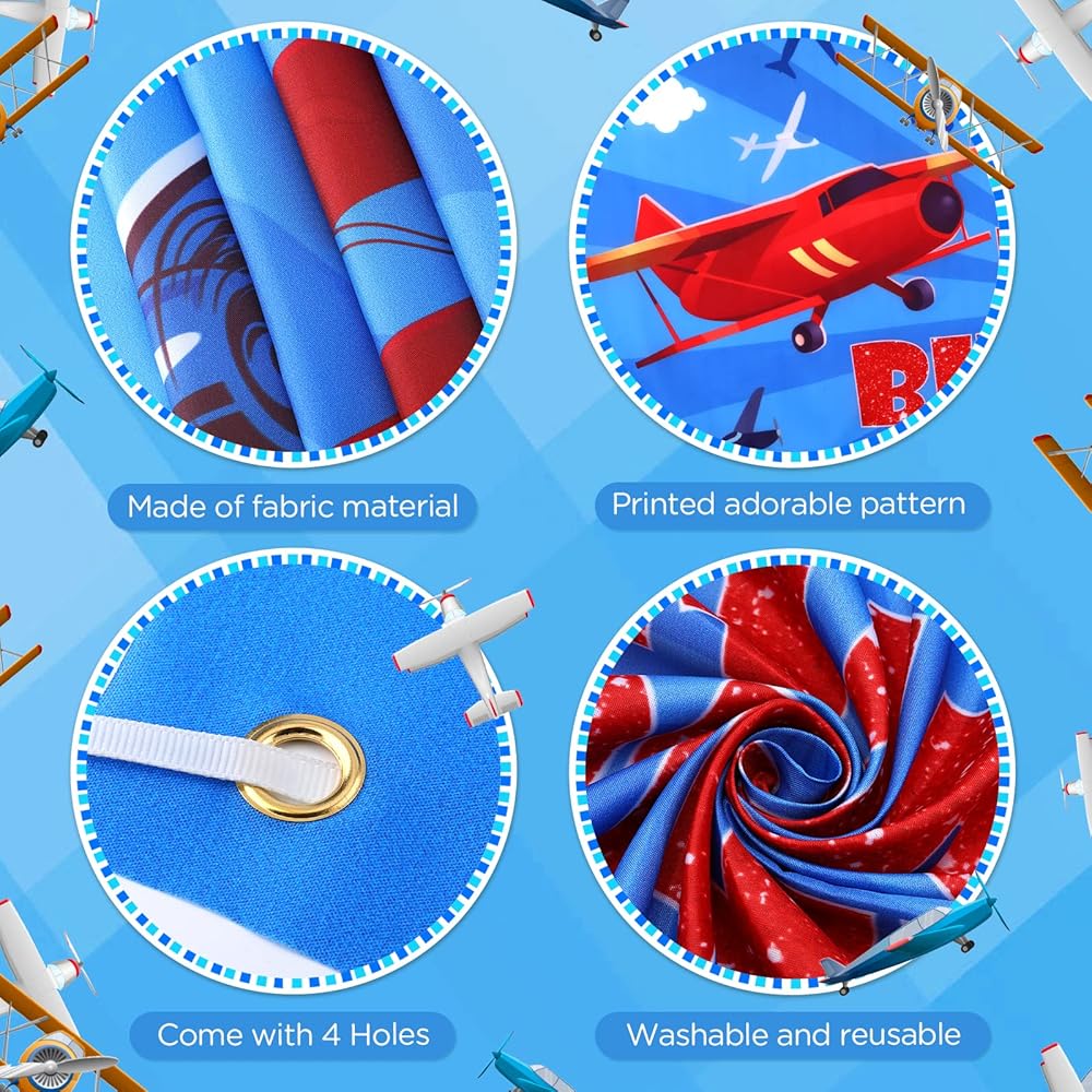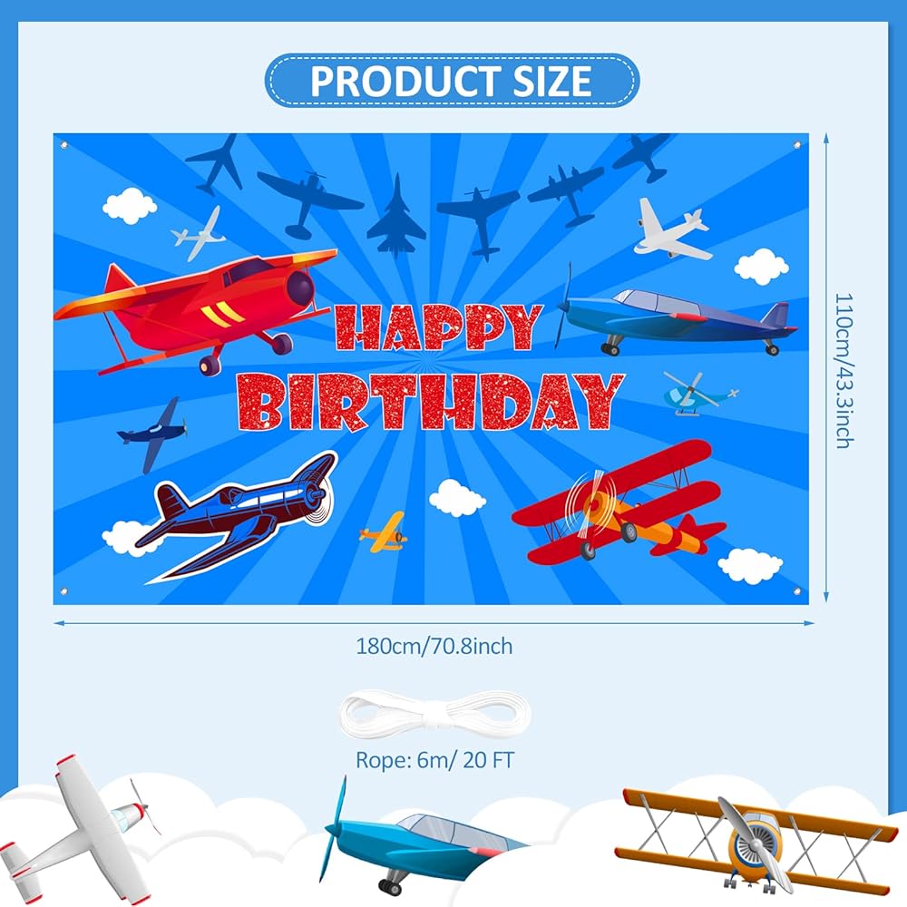 Comes with large 71 x 44 inch airplane themed birthday backdrop banner with Happy Birthday text and 6m long ribbon for easy hanging