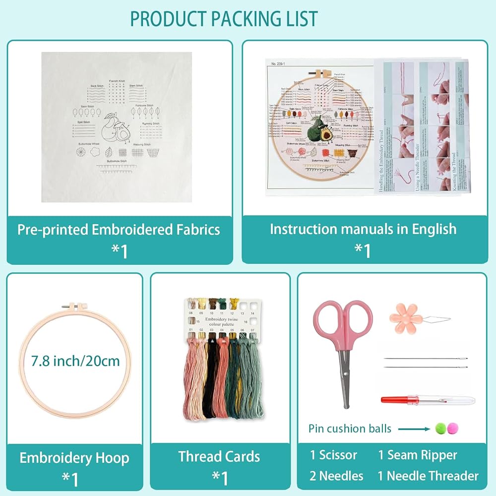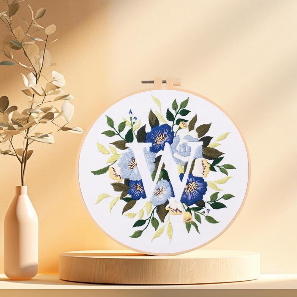 Iuhui تطريز طقم للمبتدئين البالغين - 26 رسائل زهرية سهلة ، وتطريز غرز يدوي DIY مع طوق (حرف زهرة وعشب W)