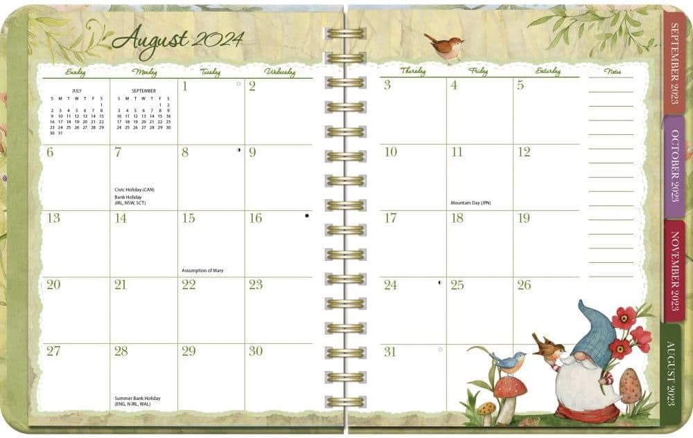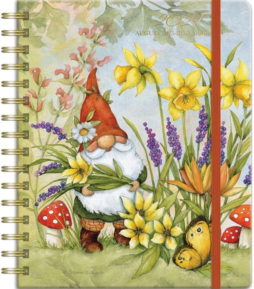Let each day be an inspiration! The Gnome Sweet Gnome Deluxe Planner 2025 filled with fun-loving Gnomes artwork by Susan Winget. LANG Deluxe Planner is a 17-month format (August 2024-December 2025). It features weekly and monthly calendar views, spiral bound design, premium paper stock and elastic closure. Sticker page included is an added bonus!
