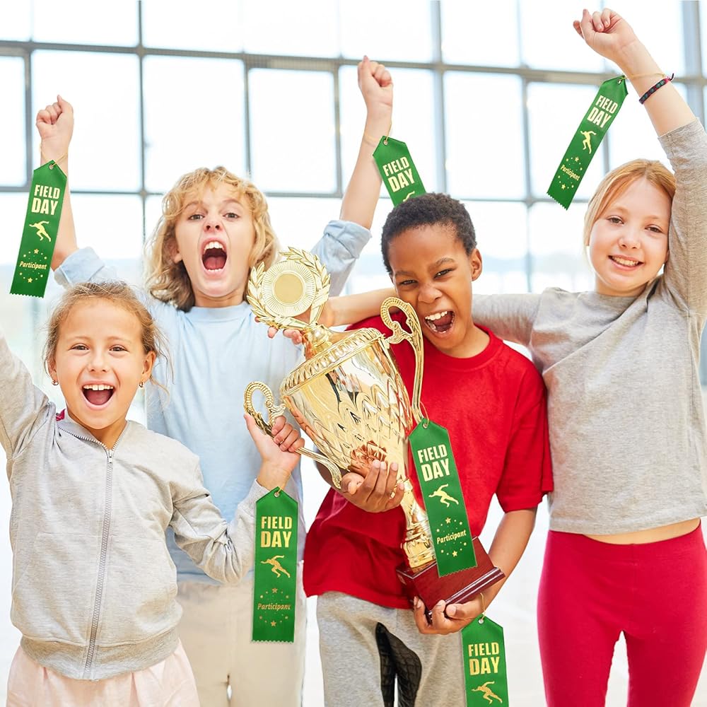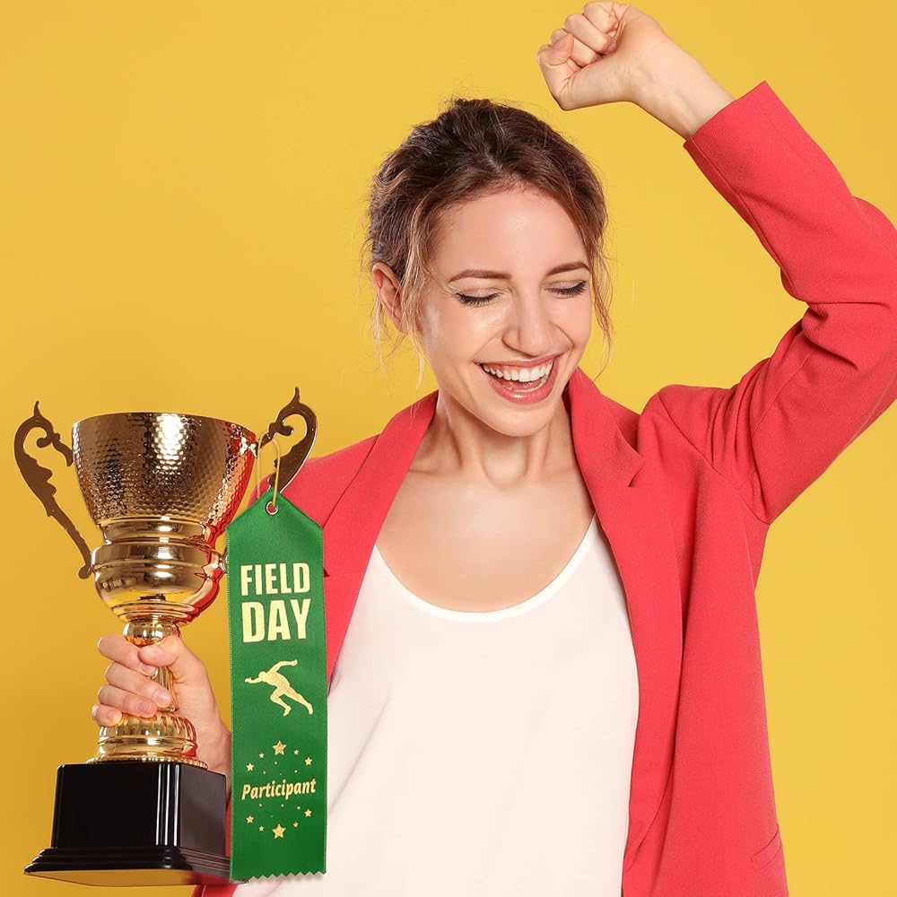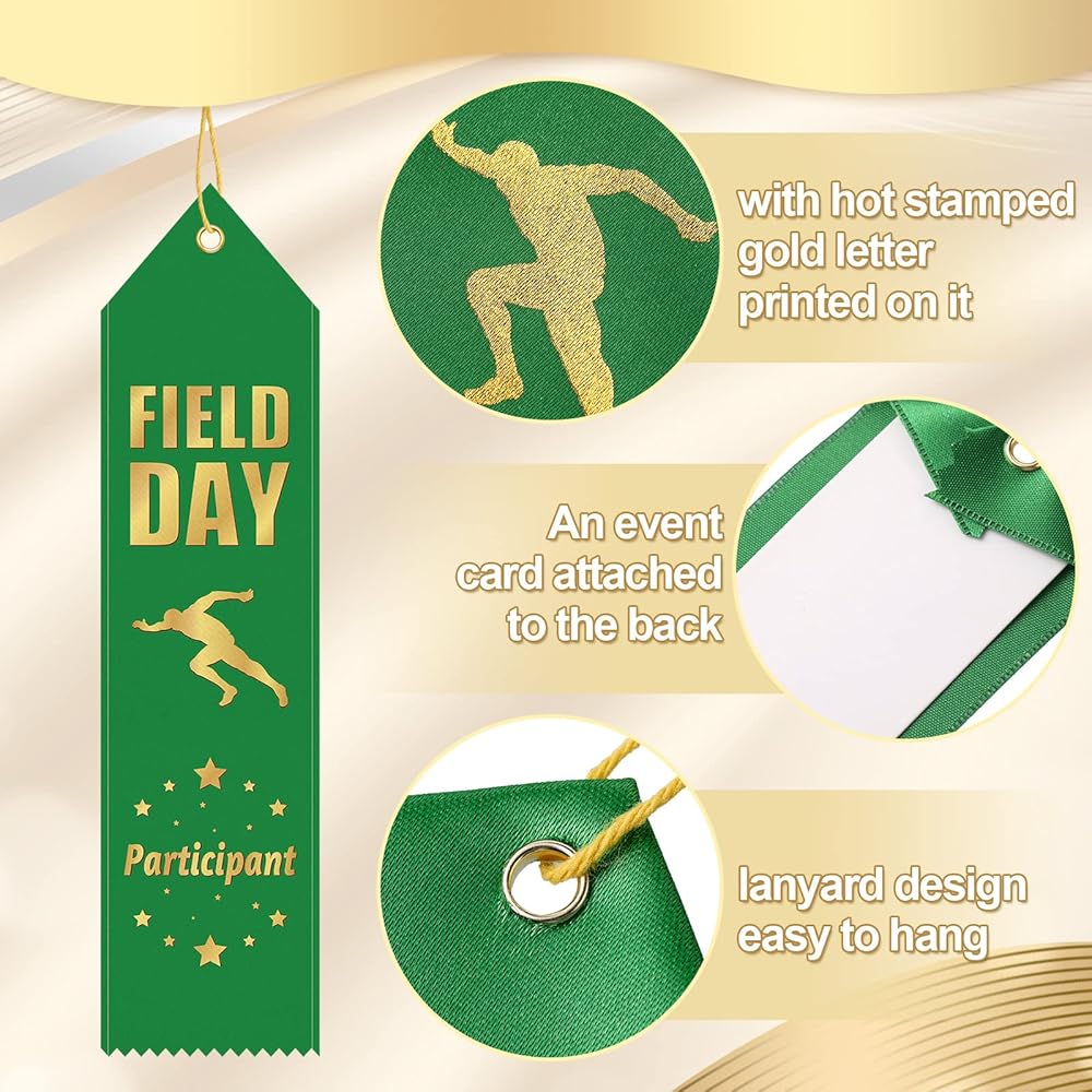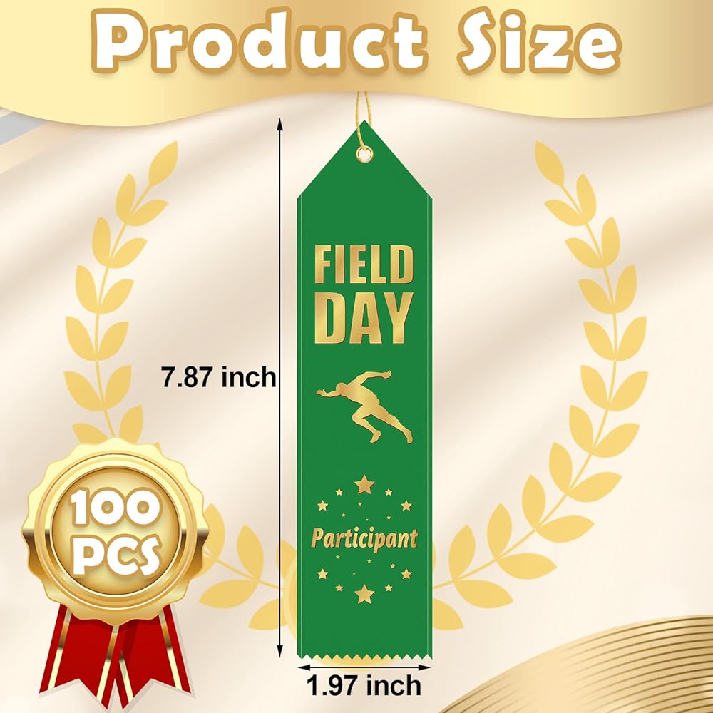 شرائط شرائط Sherr 100 PCS Field Day Ribbons بأشرطة مشاركة كبيرة لجوائز مع بطاقة الحدث وشرائط الميدالي
