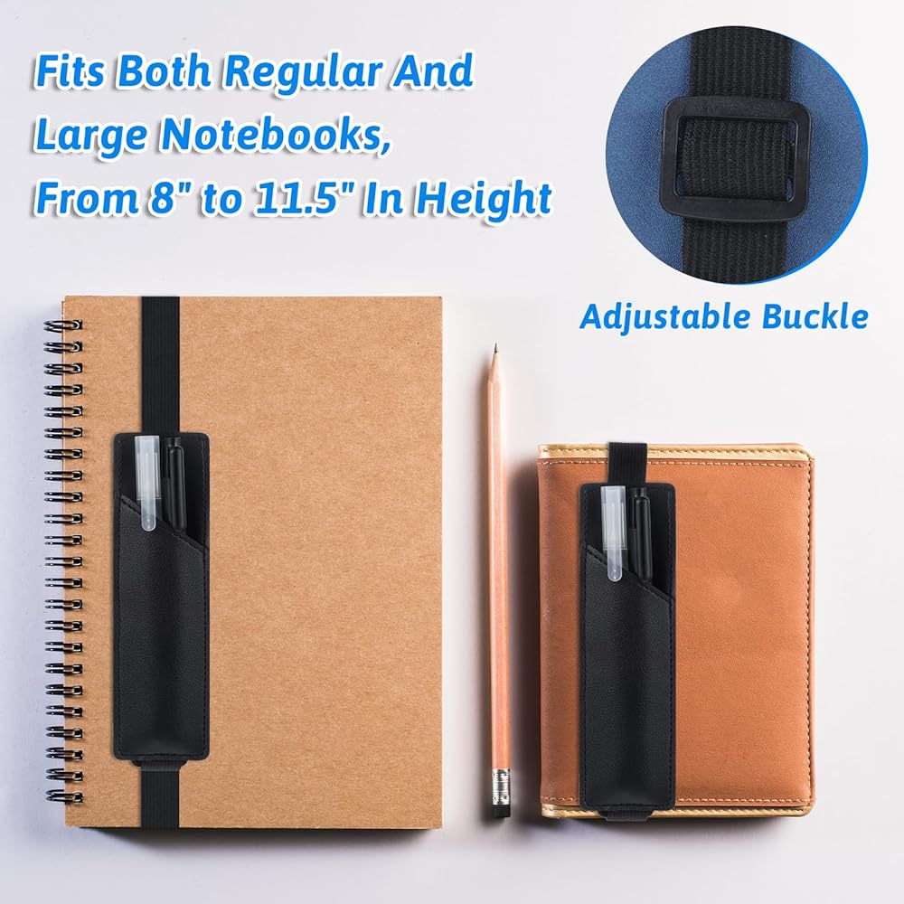 Adjustable elastic band: The elastic band design makes the pen loop holder for notebook adapt to various sizes of hardcover notebooks with good elasticity.