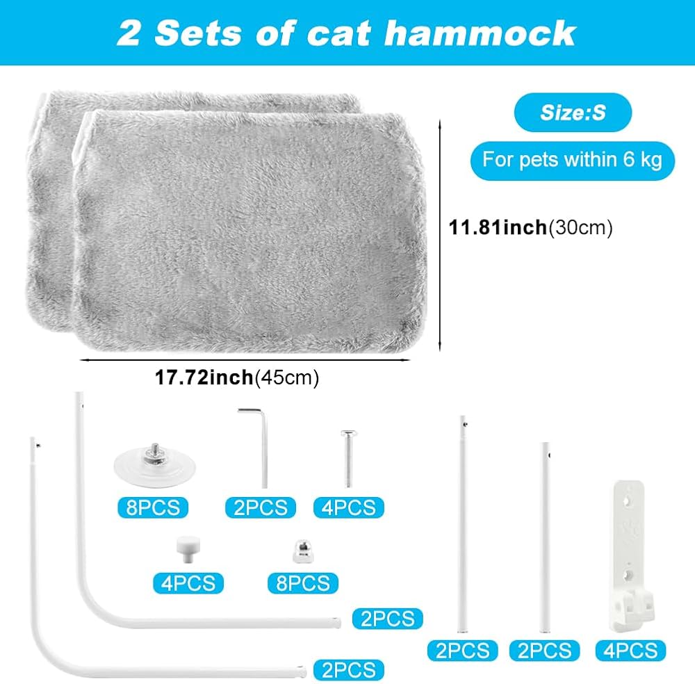 【بحجم 2 للاختيار】 عجلات نافذة القط الخاصة بنا المصممة بحجم 2: S: 30 × 45 سم/11.81 × 17.72 بوصة ، للحيوانات الأليفة في غضون 6 كجم ، و 30 × 52 سم/11.81 × 20.47 بوصة ، للحيوانات الأليفة في غضون 10 كجم ، ويمكنها تحمل قطتين كبيرتين تجمعان بين الراحة ، والسلامة ، والترفيه.
