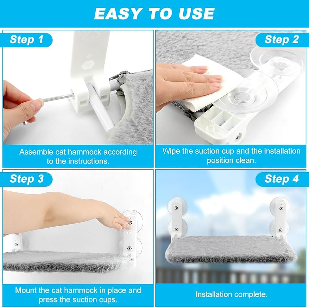 【مع إكسسوارات التثبيت】 تأتي مع جميع ملحقات التثبيت ، يمكنك تركيب الأرجوحة بشكل آمن على النافذة ، مما يوفر بقعة آمنة ومريحة للحيوانات الأليفة الخاصة بك للاسترخاء. تأتي مقاعد نافذة القطط مع جميع الأدوات المطلوبة والتعليمات التفصيلية. يمكن لقطتك استخدام سريره الجديد لفترة قصيرة!