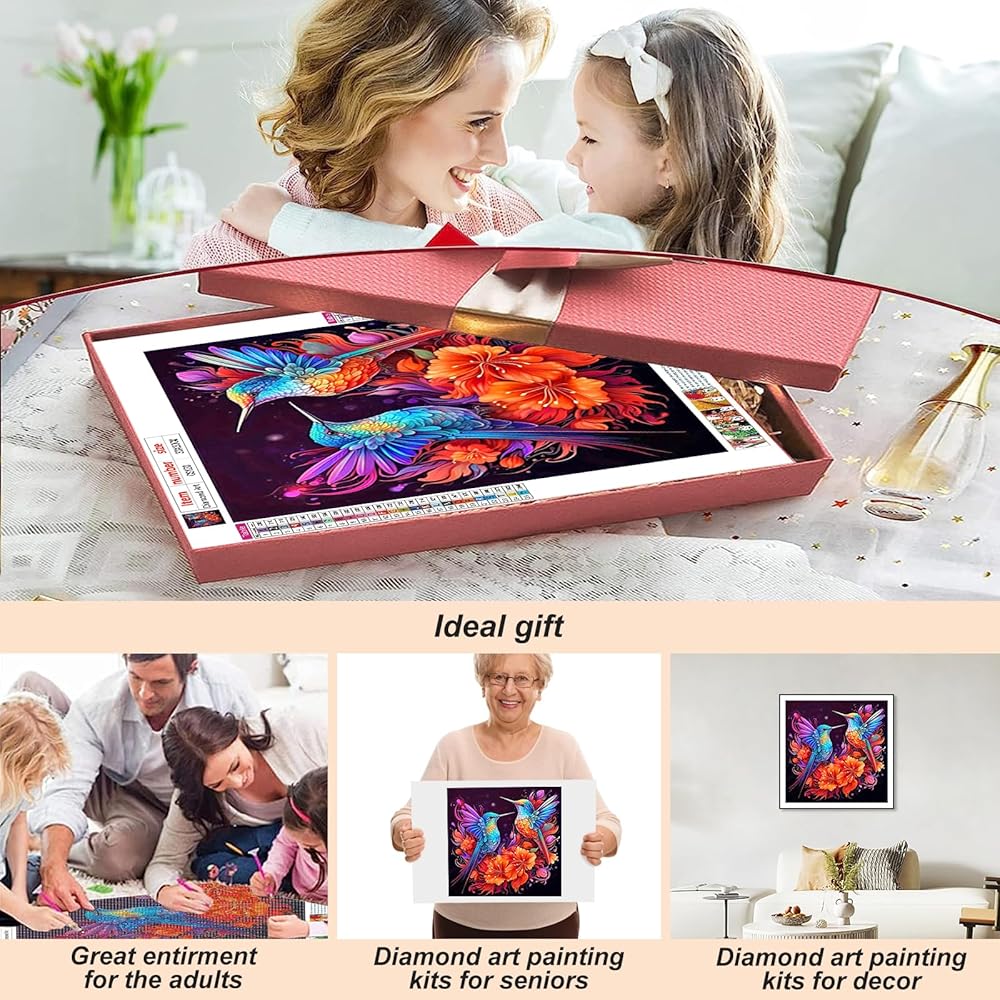 مجموعات الطلاء الماس Acudotr للبالغين ، 5D DIY Bird Diamond Art Kits للمبتدئين ، وأطقم الطلاء الماس الكاملة لديكور الجدار المنزلي ، الطائر الطنان ، 12x12 بوصة