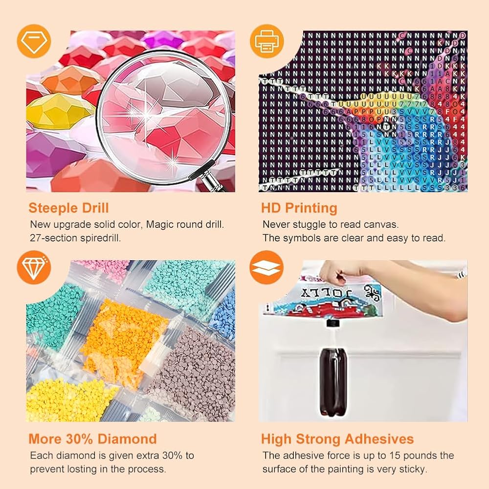 • تدريبات كاملة - مجموعات الطلاء الماسي الطنان للبالغين ، تغطي الخرز صورة الرسم الماس بأكمله وجعل الصورة أكثر براقة ، إذا كان لديك ما يكفي