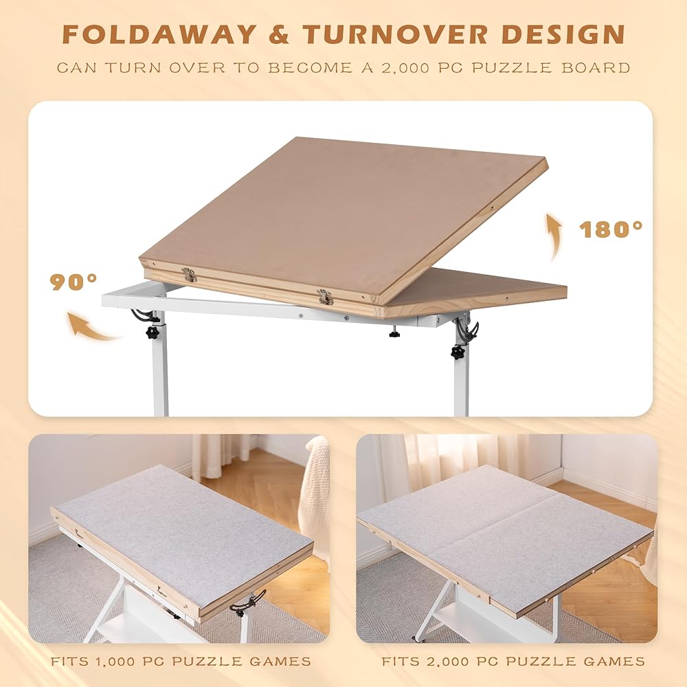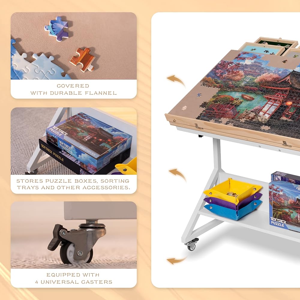 Tektalk 2000 قطعة ألغاز طاولة قابلة للطي مع تعديل الطول والزاوية ، لوحة ألغاز بانوراما مع غطاءين محسمين و 8 أدراج فرز ، مائلة للألغاز مع الساقين ، مغلقة بـ 4 عجلات أسطوانية