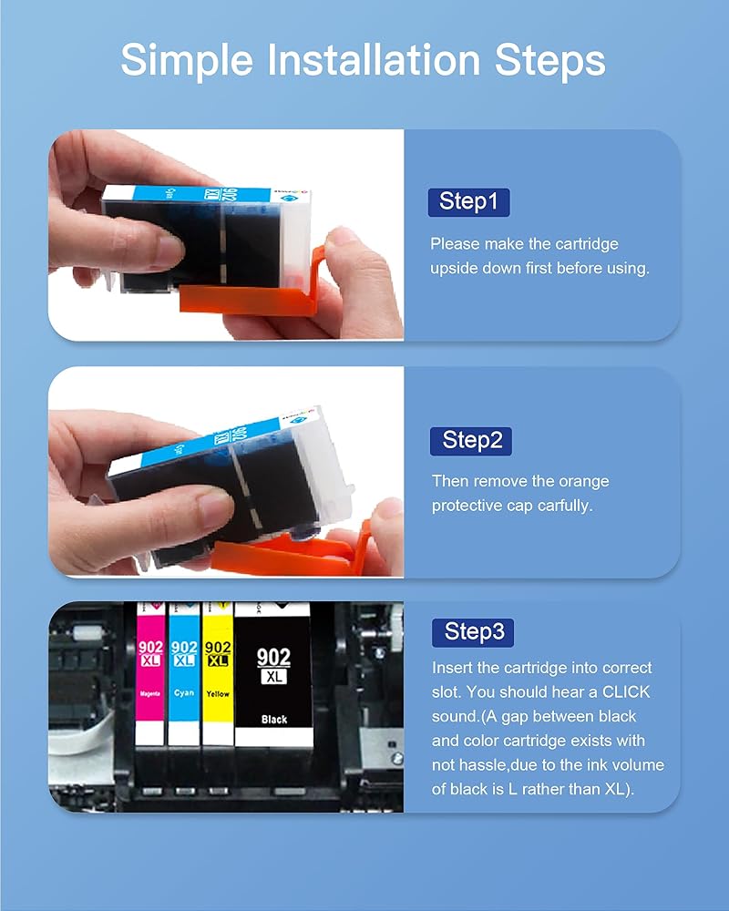 - 3. شملت الحزمة: 4 حزمة من خراطيش الحبر 902XL لطابعات HP (أحدث رقاقة).