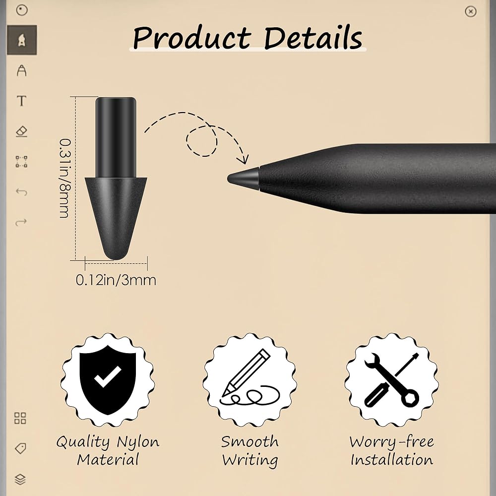 • Long lasting Reliable Performance: The tablet replacement pen tips are made of quality nylon material, which can minimize the wear of the nibs. The nibs are carefully designed to be compatible with reMarkable Paper Pro and will not damage the special screen surface of the tablet. They can provide ideal friction and responsiveness, ensuring accuracy and sensitivity