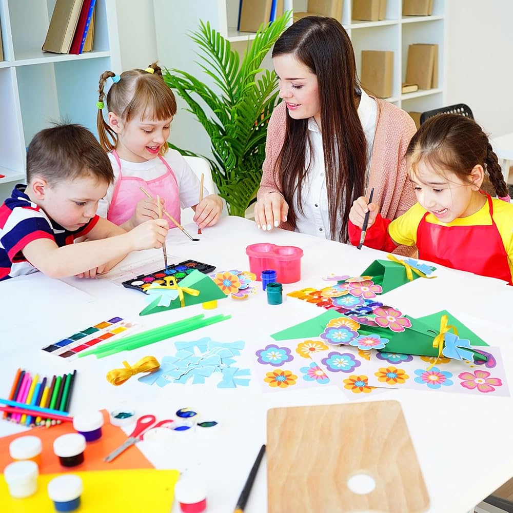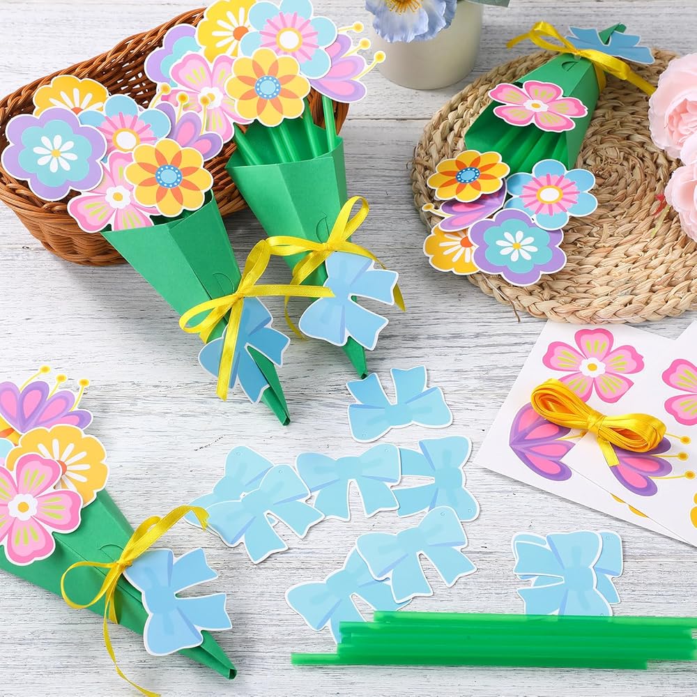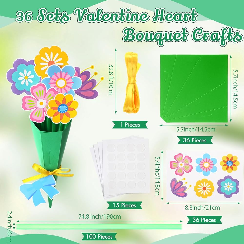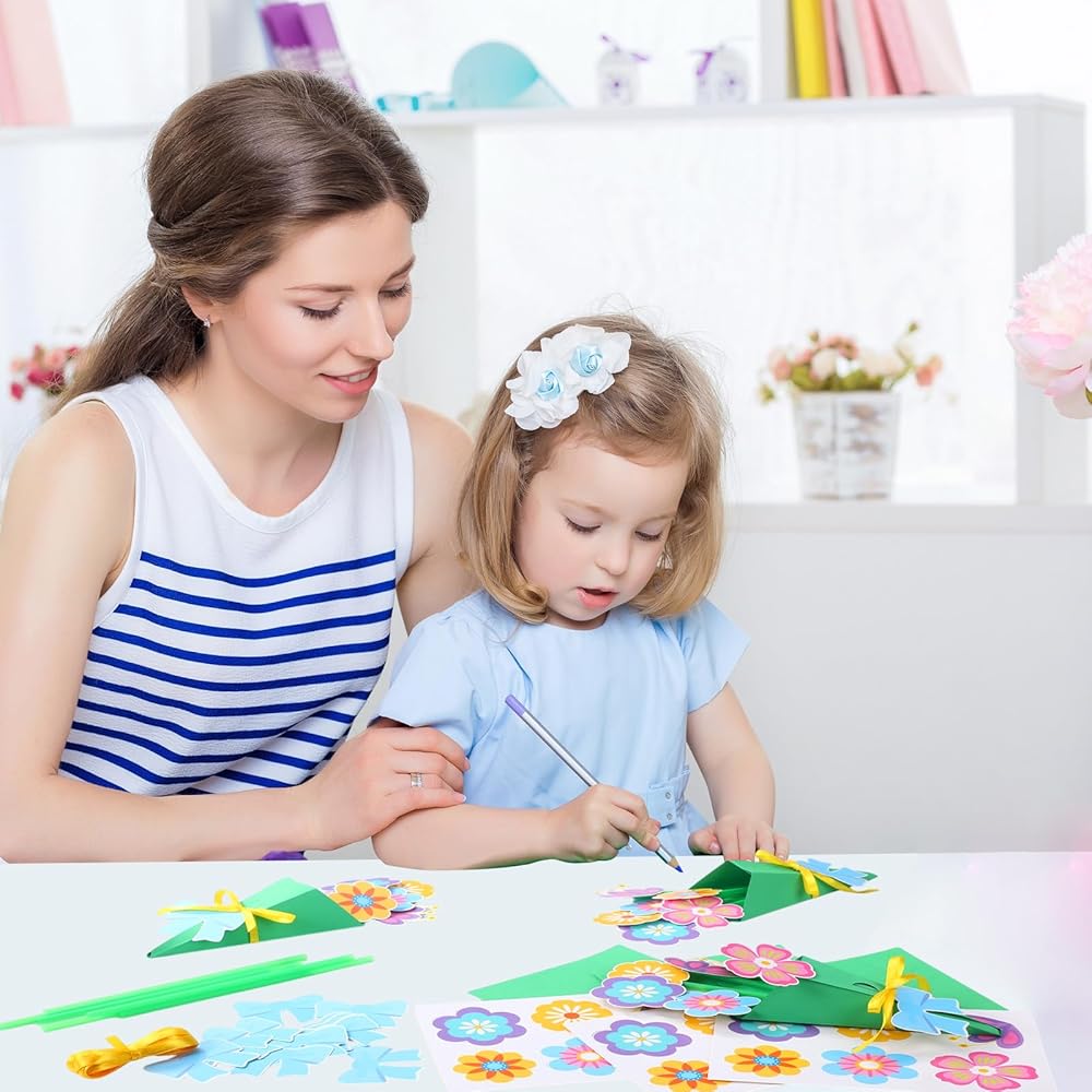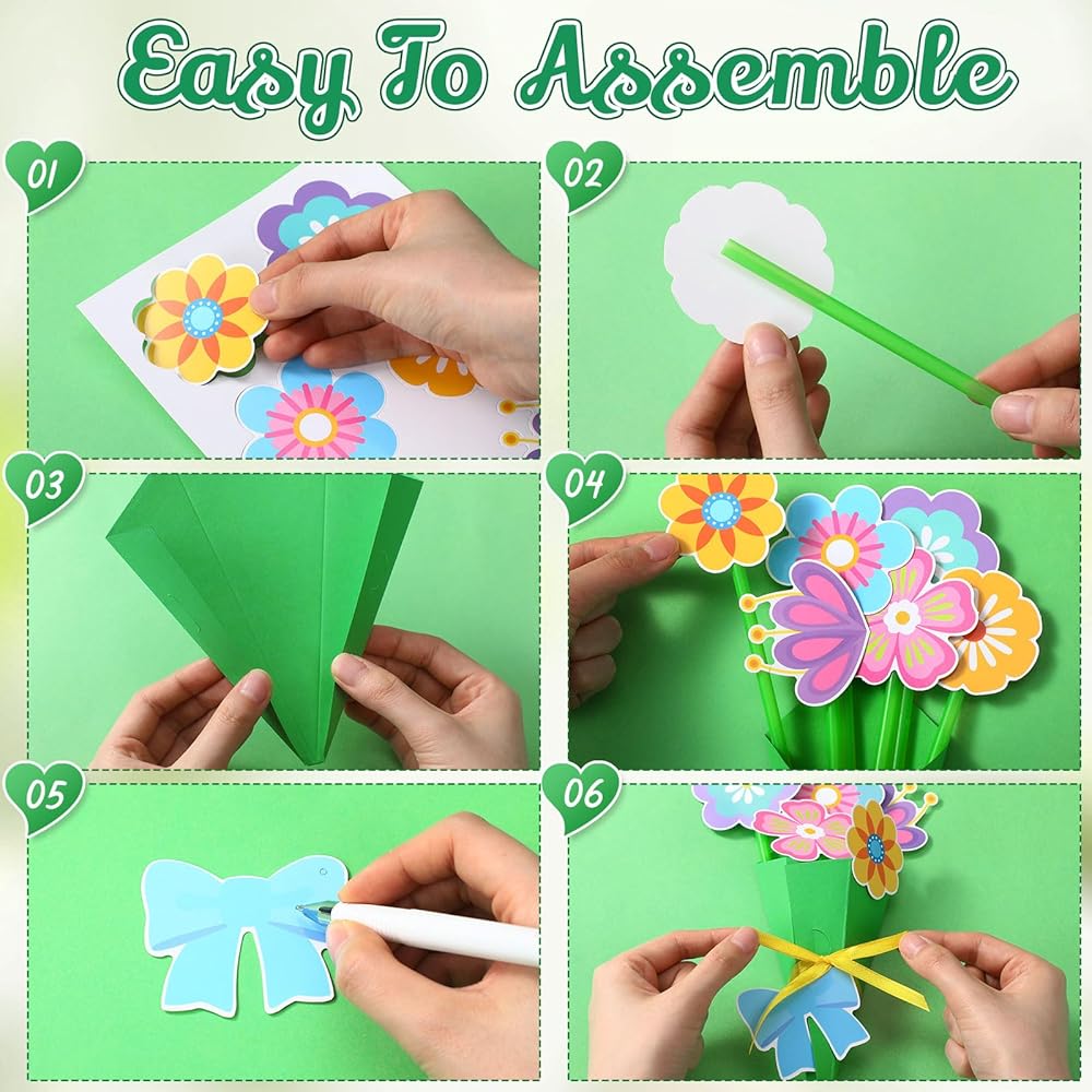 This Spring theme craft kit comes with adhesive dots, and the green card paper has dotted lines for forming a bouquet shape, stick all the parts together with adhesive dots and fix them to complete, it's a nice way to express love and creativity this festival.