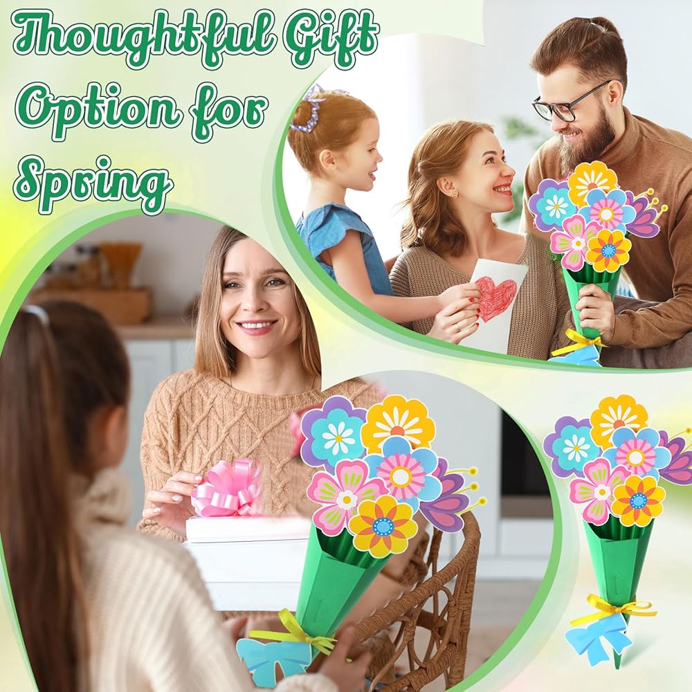 Our DIY Spring flower bouquet art and craft is a nice way to express festival joy, make handmade gifts for your friends or family, let the bow card fill with the language of love, give the finished crafts to your family, lovers or friends and warm anyone's hearts.