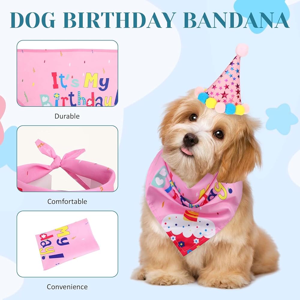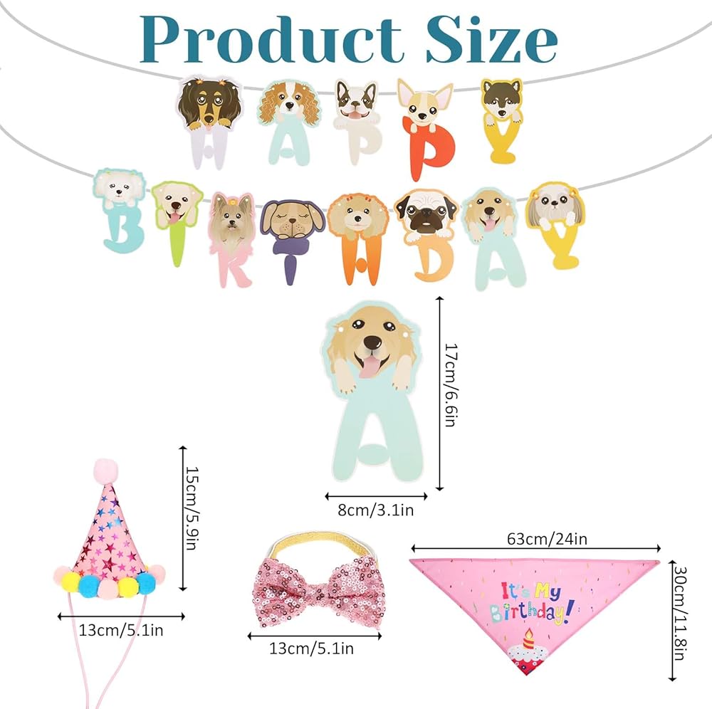 • 【Dog Birthday Party Supplies】Includes a bandana printed wif “It's My Birthday!”,a blue bling five star dog birthday hat,a blue dog birthday bow tie collar,a dog birthday sign banner printed wif”Happy Birthday”wif cute dog head.