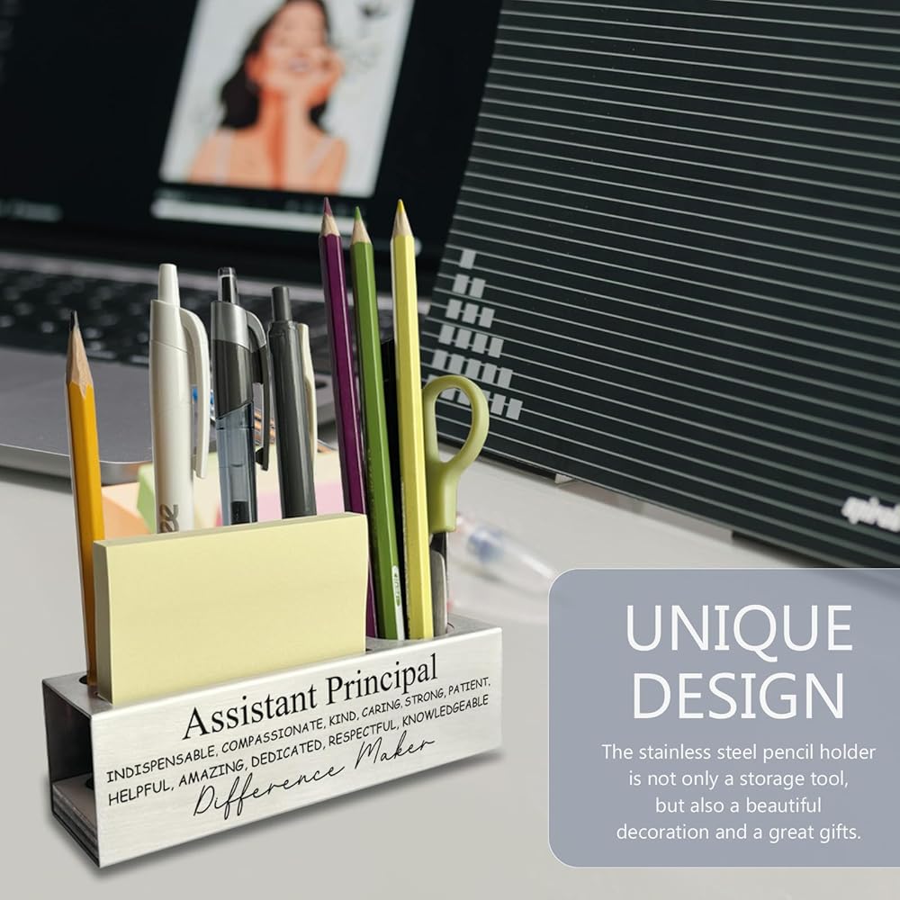 Material - The stainless steel pen holder is made of high-quality stainless steel, There is a non slip wooden block at the bottom. which not only looks elegant and generous, but also shows a unique metallic texture. This material is not only strong and durable, maintains its luster like new over time.