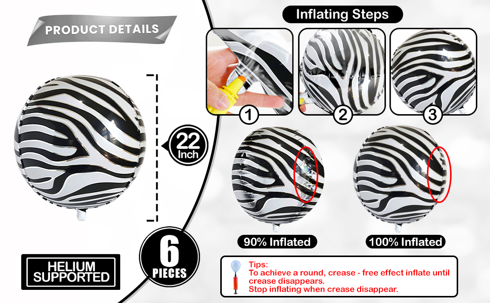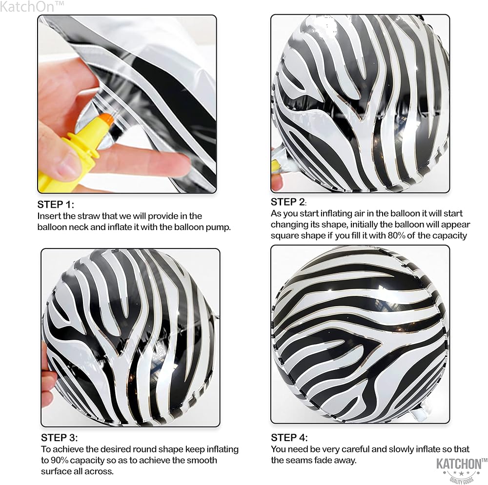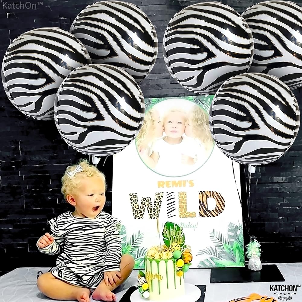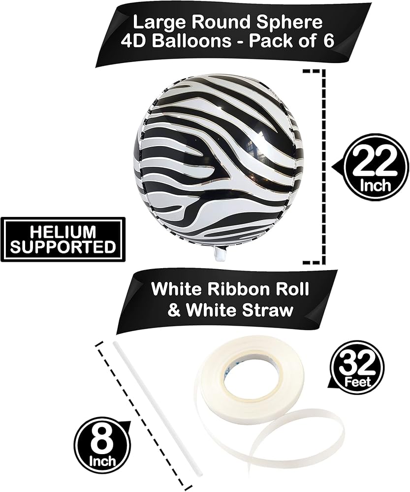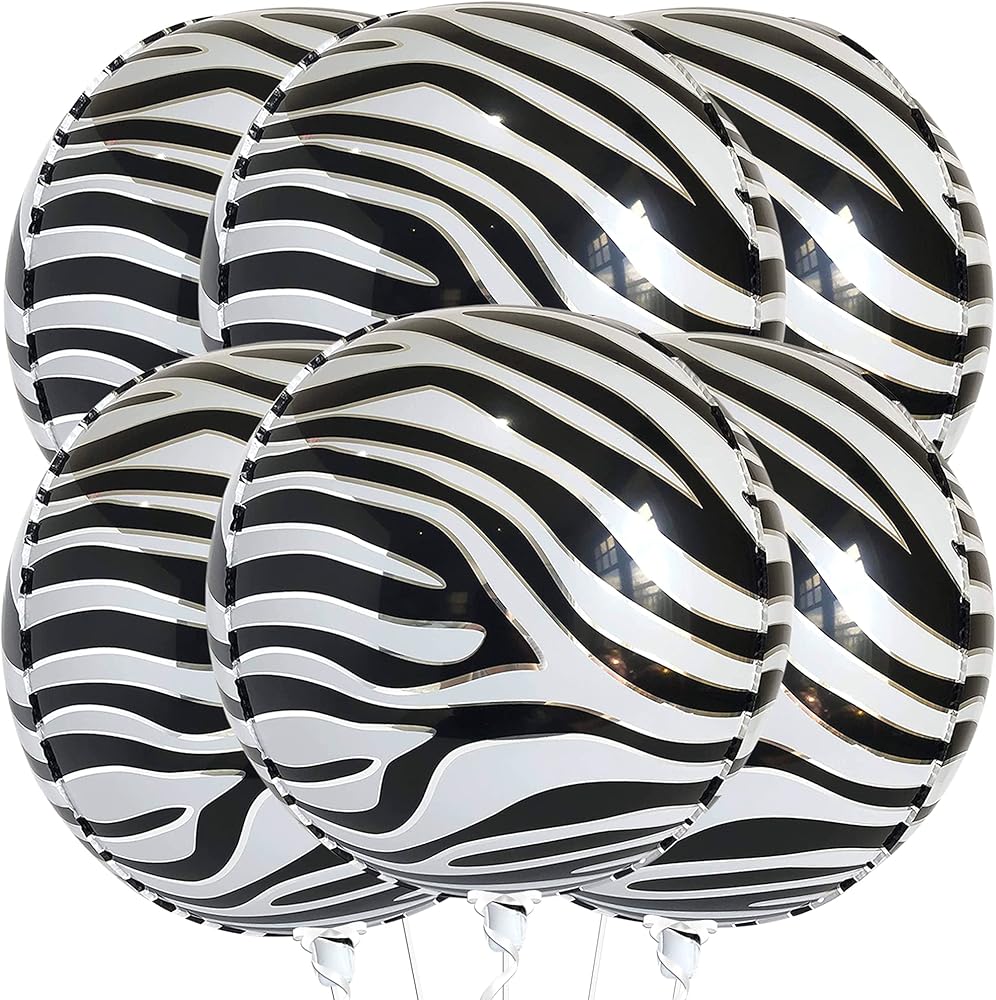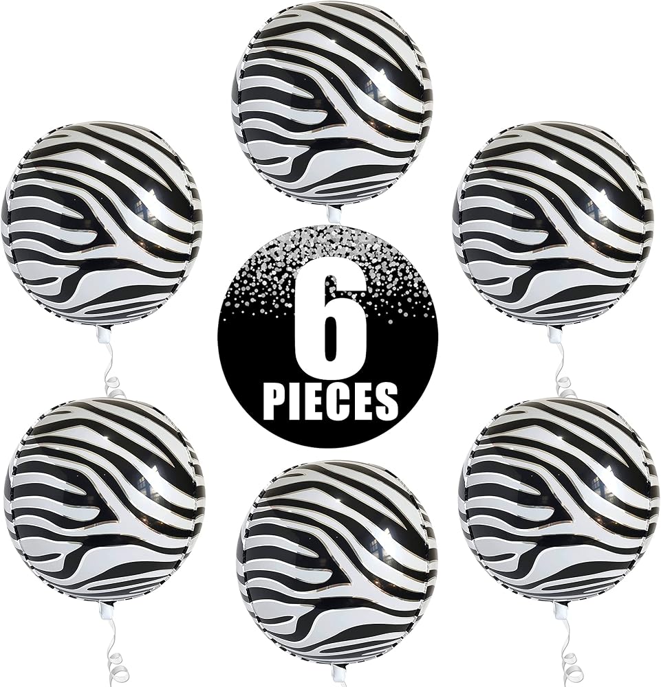 البالونات الكبيرة 22 بوصة حمار وحشي - حزمة 6 | Zebra طباعة بالونات الحيوانات للزخارف الحزبية بالأبيض والأسود