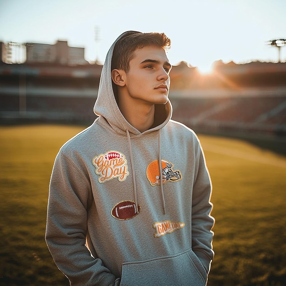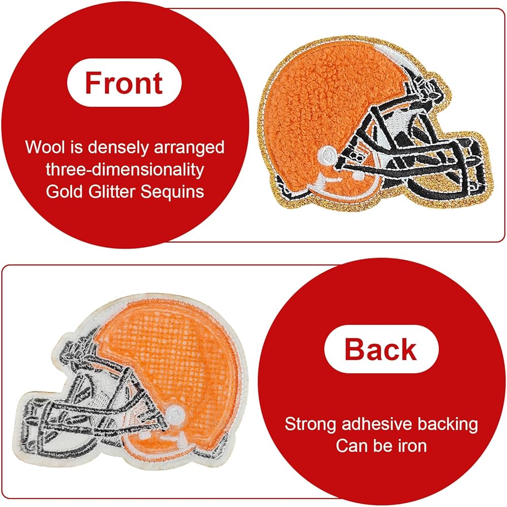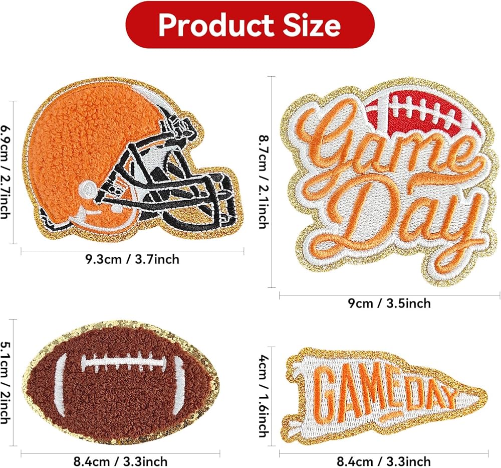 4 PCS Chenille Rugby Gameday مطرزة على بقع الحديد على تنوع DIY. يمكن تسويتها أو مخيط. مثالي لتزيين السترات والقبعات وحقائب الظهر والجينز والمزيد لمنحهم نظرة جديدة