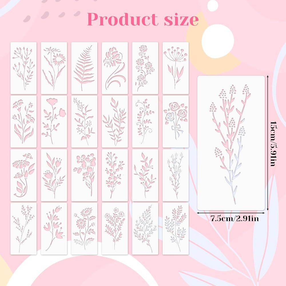 24pcs زهرة الإستنسل للطلاء ، 5.9 × 2.9 بوصة طلاء الأزهار طلاء الطلاء القابلة لإعادة الاستخدام قابلة لإعادة الاستخدام للطلاء البري للالطال