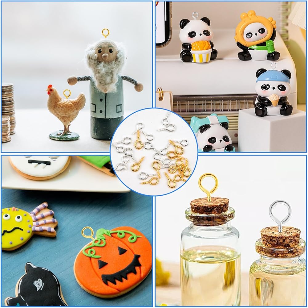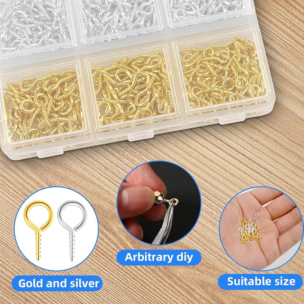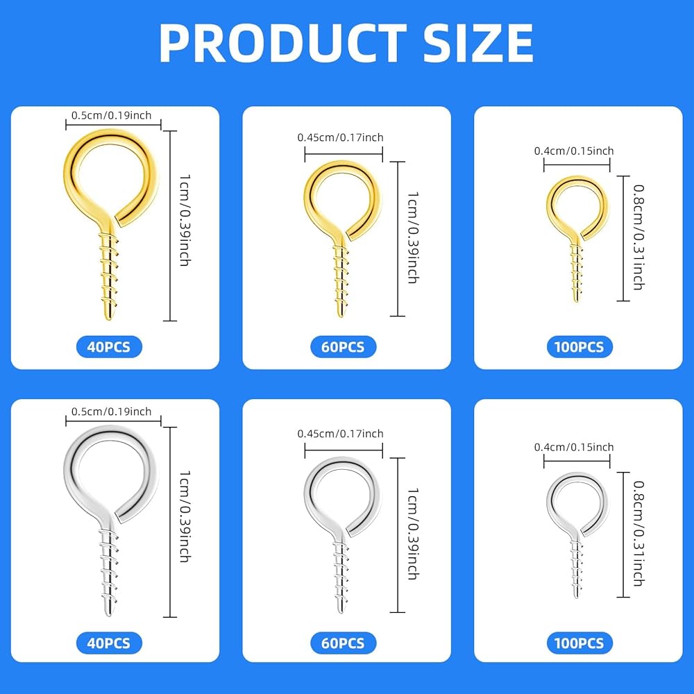 Package Contents: There are 400 pieces of Small Screw Eye Pins come in two elegant colors—gold and silver—offering three sizes: 8*4mm 100pcs per colors, 10*4.5mm 60pcs per color, and 10*5mm 40pcs per color, ensuring you find the perfect fit for your project.
