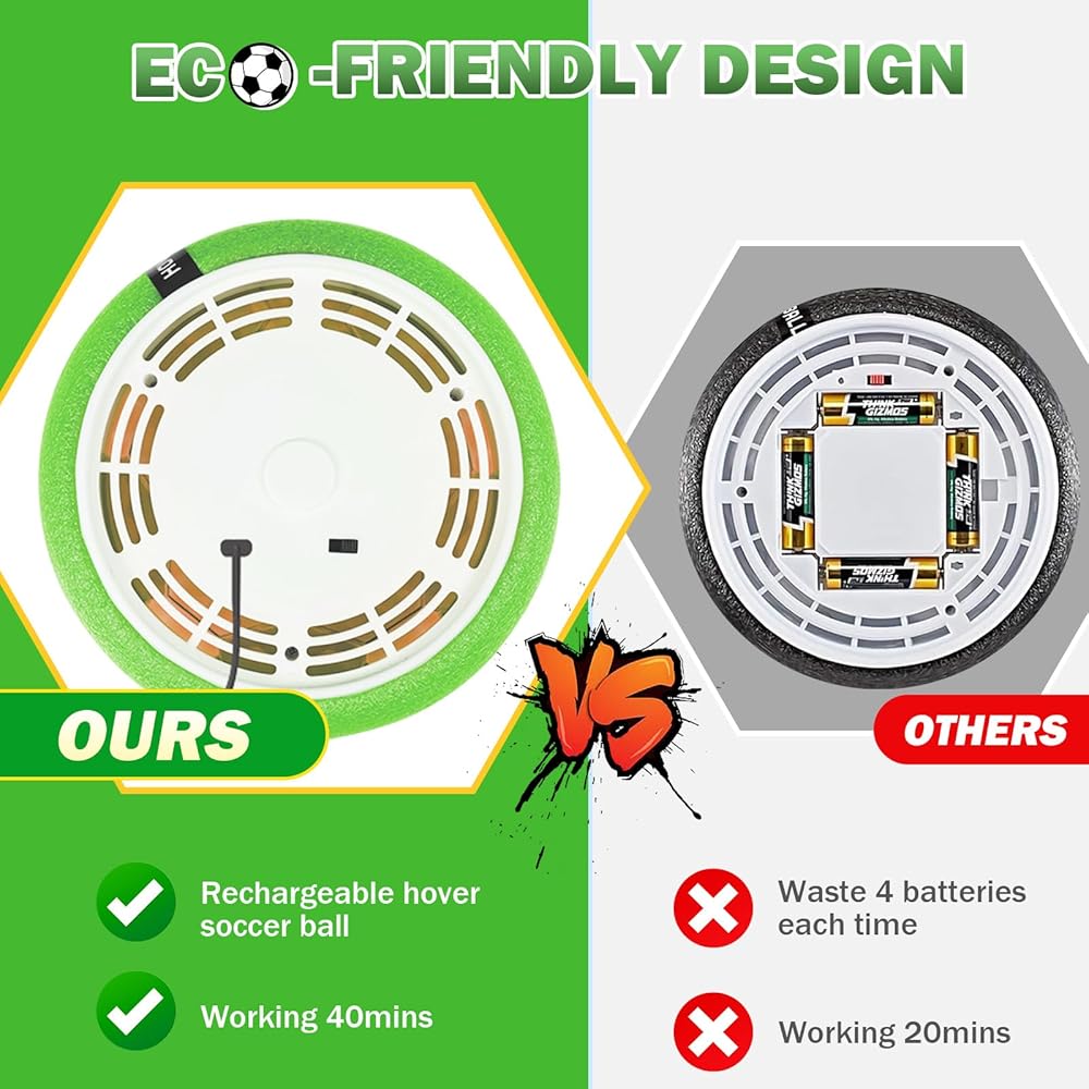 [قابلة للشحن وصديق للبيئة] التخلص من متاعب البطاريات التي يمكن التخلص منها! تتميز Balam Hover Soccer Ball ببطارية قابلة لإعادة الشحن مدمجة ، مما يسمح لساعات من اللعب دون انقطاع بشحن واحد. ما عليك سوى توصيله عبر النوع C ، إعادة الشحن ، متعة مستدامة وخالية من القلق في كل مرة.