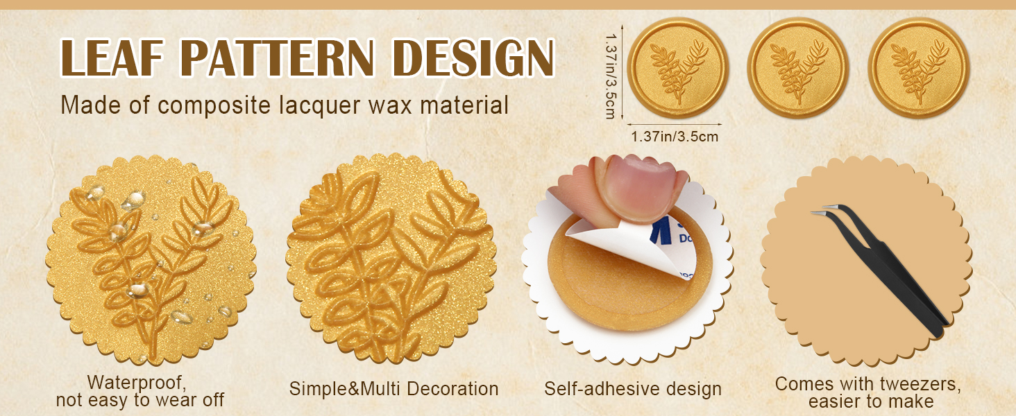【مواد】 ملصقات ختم المغلف مصنوعة من شمع الطلاء المركب ، مقاوم للماء ولن يتلاشى. لديها لاعبة قوية. أي شخص يتلقى الدعوات أو الهدايا مع ملصقات الختم سوف يفاجأ والتفكير.